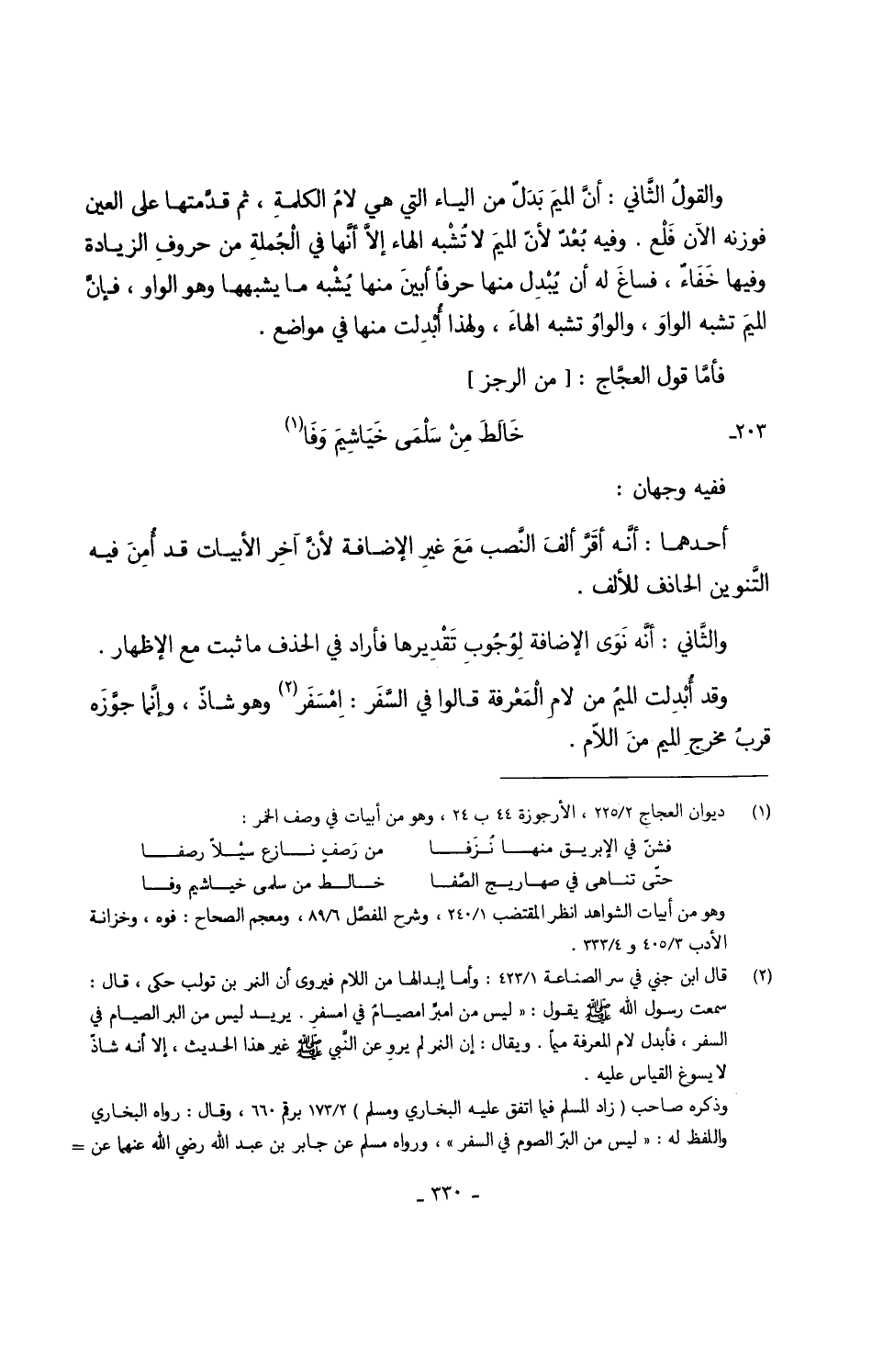 وَقد أُبْدِلت الميمُ من لامِ الْمَعْرِفة قَالُوا فِي السَّفَر اِمْسَفَر وَهُوَ شاذّ وإنَّما جوَّزَه قربُ مخرج الميمِ منَ اللَّام