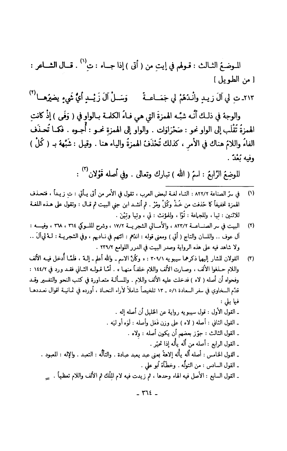 الموضعُ الرَّابعُ اسمُ الله تبَارك وَتَعَالَى وَفِي أَصله قَوْلان