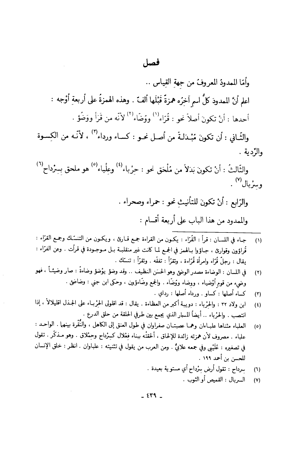 اعْلَم أنَّ الممدودَ كلُّ اسمٍ آخرُه همزةٌ قَبْلَها ألفٌ وَهَذِه الهمزةُ على أربعةِ أوْجه