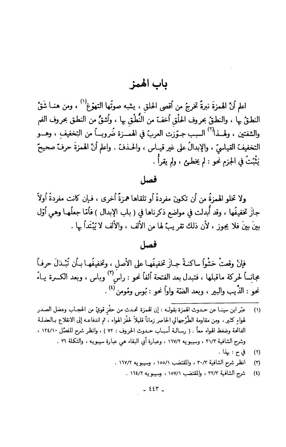 اعْلَم أنَّ الهمزةَ نبرةٌ تخرجُ من أقْصَى الحلقِ يشبه صوتُها التهوّعَ وَمن هُنَا شَقَّ النطقُ بهَا والنطقُ بحروف الحلْقِ أخفّ من النُّطْقِ بهَا واشقُّ من النُّطْق بحروف الْفَم والشفتين وَلِهَذَا السَّبَب جوّزت العربُ فِي الْهمزَة ضُروباً من التخفيفِ وَهُوَ التخفيفُ القياسيّ والإبدالُ على غير قِيَاس والحذفُ وَاعْلَم أنَّ الهمزةَ حرفٌ صحيحٌ يَثْبُتُ فِي الْجَزْم نَحْو لم يُخطئ وَلم يقْرَأ