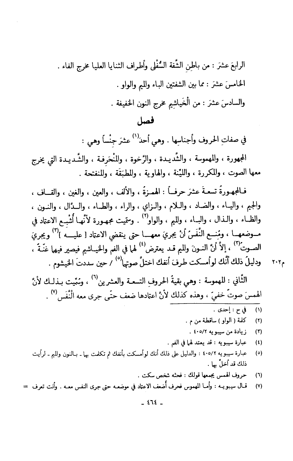 الثَّاني المهموسة وَهِي بقيةُ الحروفِ التِّسْعَة وَالْعِشْرين وسُمِّيت بذلك لأنَّ الهمسَ صوتٌ خفيّ وَهَذِه كَذَلِك لأنَّ اعتمادها ضعف حتّى جرى مَعَه النَّفَس
