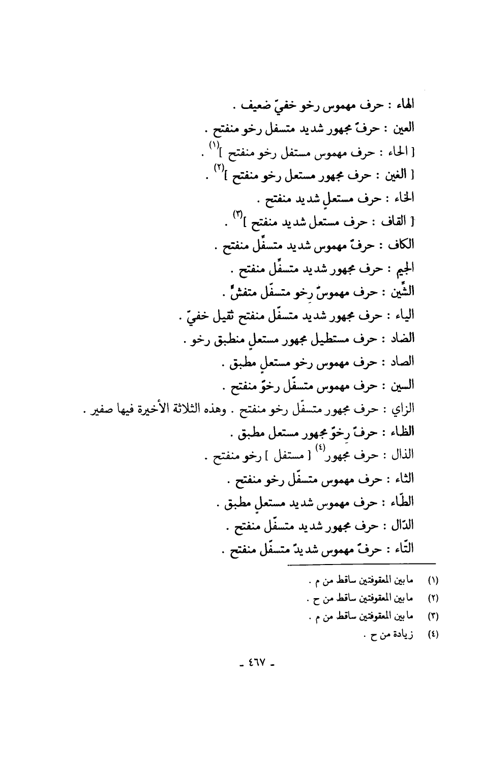 الْهَاء حرف مهموس رخو خفيّ ضَعِيف