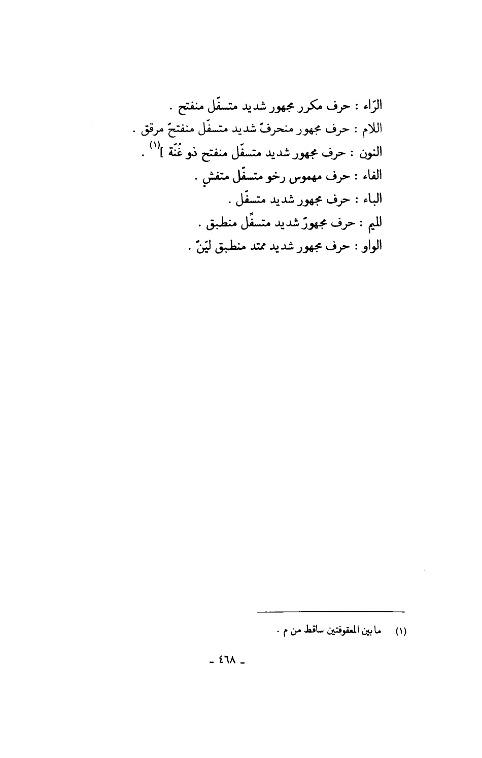 الْمِيم حرف مجهور شَدِيد متسفِّل منطبق