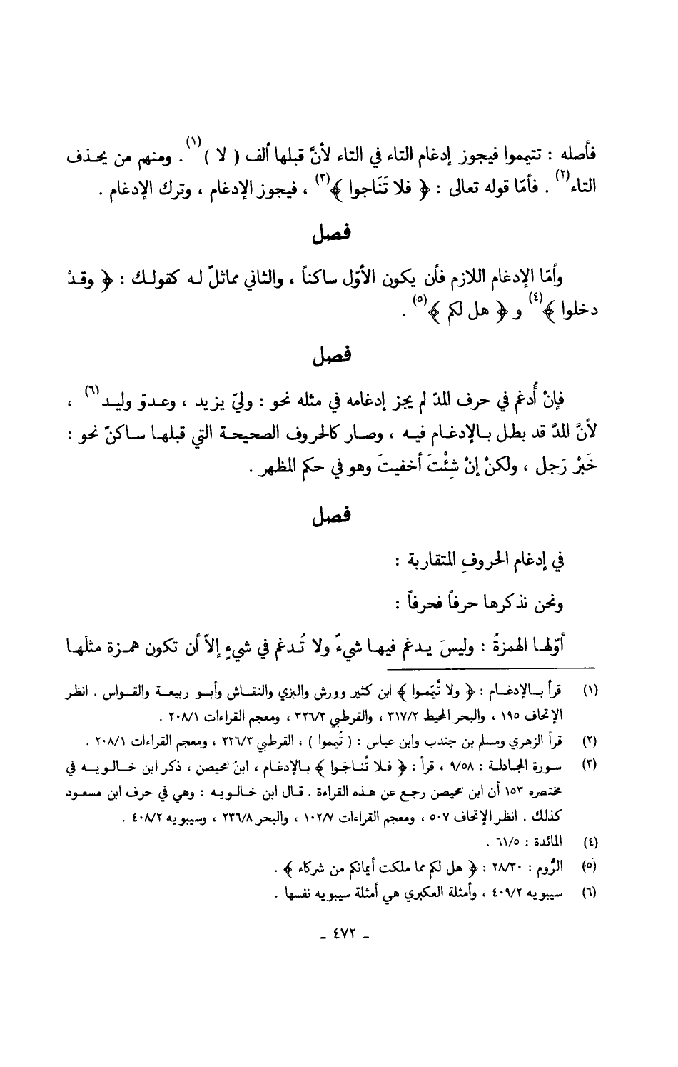 فأصله تتيمموا فَيجوز إدغام التَّاء فِي التَّاء لأنَّ قبلهَا ألف لَا وَمِنْهُم من يحذف التَّاء فَأَما قَوْله تَعَالَى {فَلَا تتناجوا} فَيجوز الْإِدْغَام وَترك الْإِدْغَام
