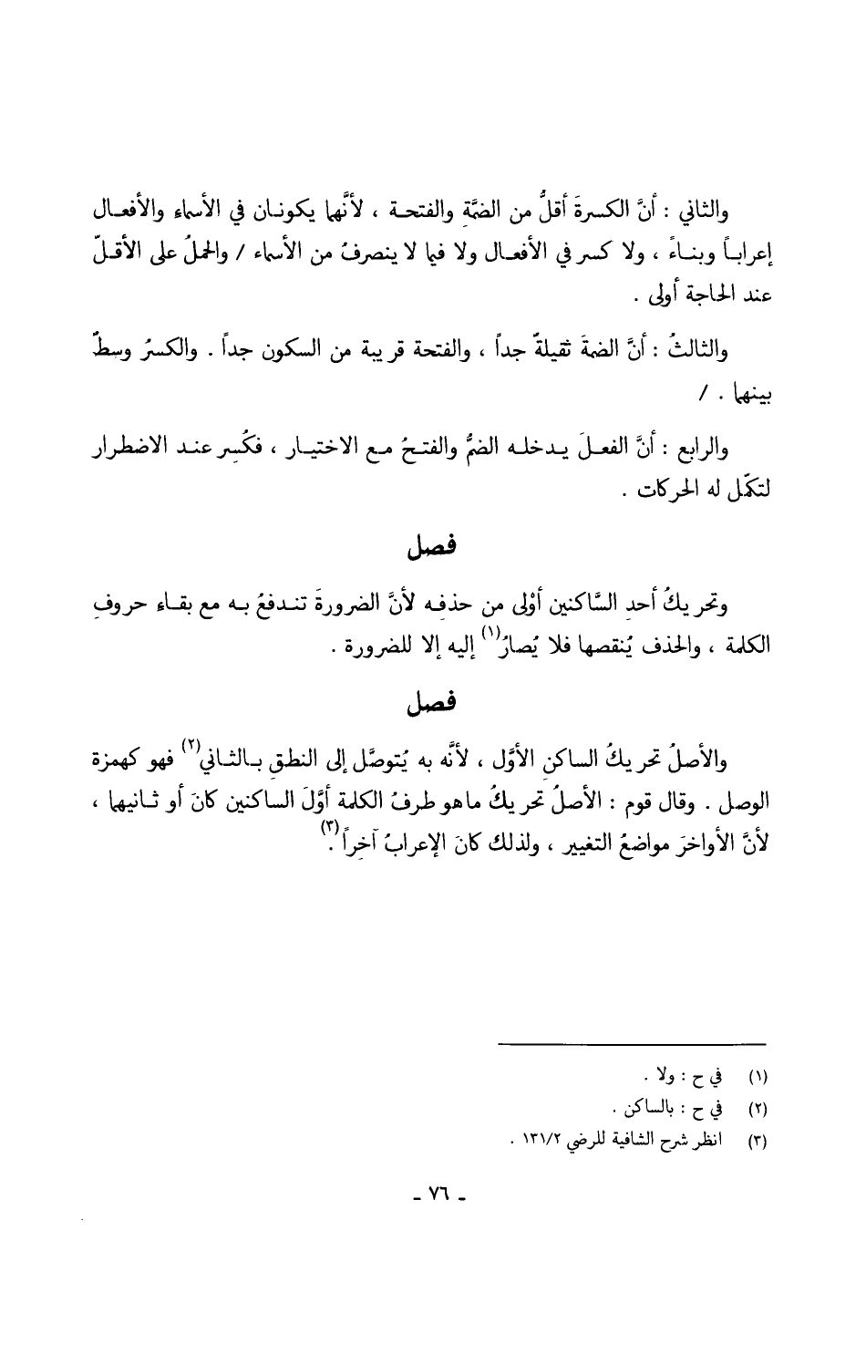 والثالثُ أنَّ الضمةَ ثقيلةٌ جدا والفتحة قريبَة من السّكُون جدا والكسرُ وسطٌ بَينهمَا