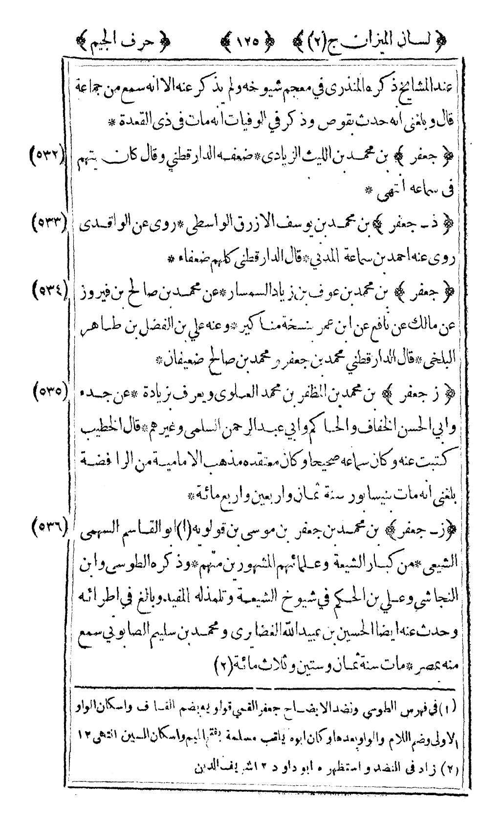 1 في فهرس الطوسي ونضد الإيضاح جعفر القمي قولويه بضم القاف وإسكان الواو الأولى وضم اللام والواو بعدها وكان أبوه يلقب مسلمة بفتح الميم وإسكان السين انتهى 12