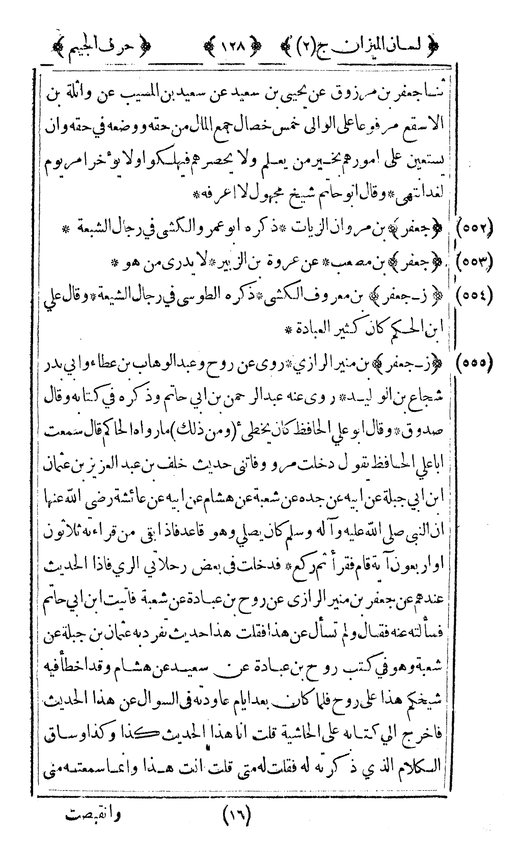 [554] "ز- جعفر" بن معروف الكشي ذكره الطوسي في رجال الشيعة وقال علي بن الحكم كان كثير العبادة.