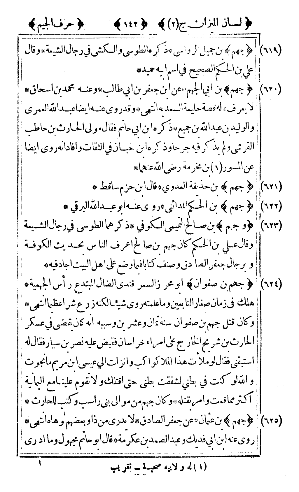 [619] "جهم" بن جميل الرواسي ذكره الطوسي والكشي في رجال الشيعة وقال علي بن الحكم الصحيح في اسم أبيه حميد.