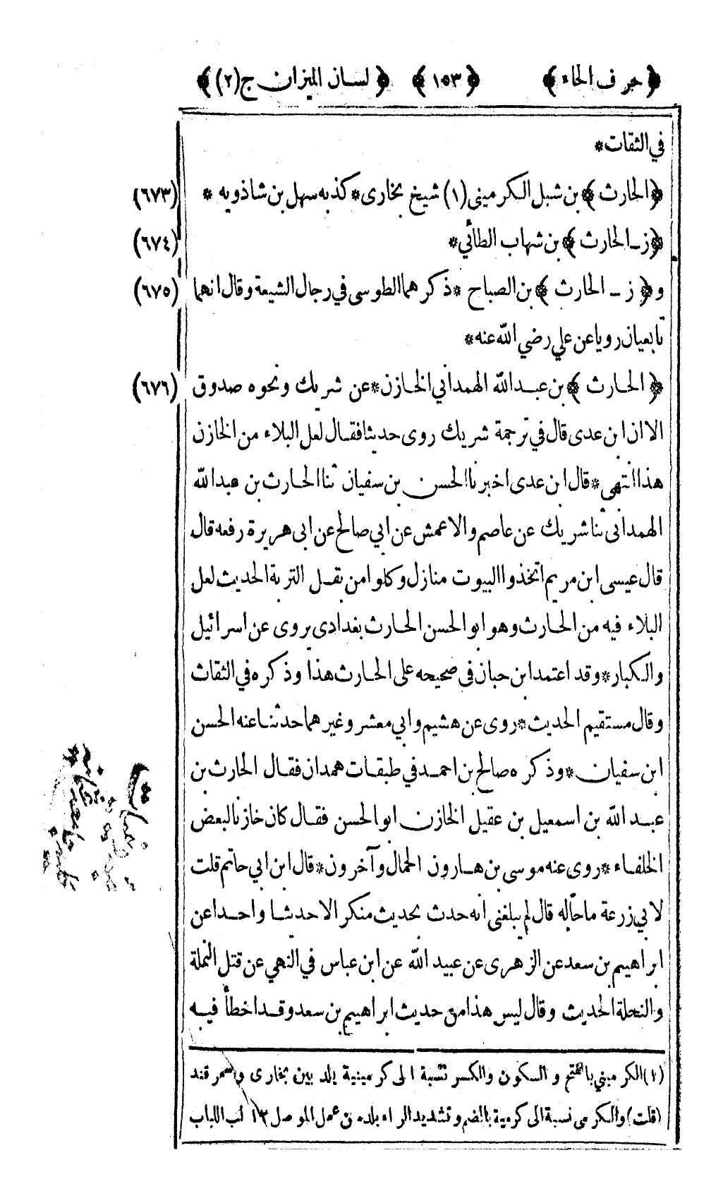 [673] "الحارث" بن شبل الكرميني1 شيخ بخاري كذبه سهل بن شاذويه.