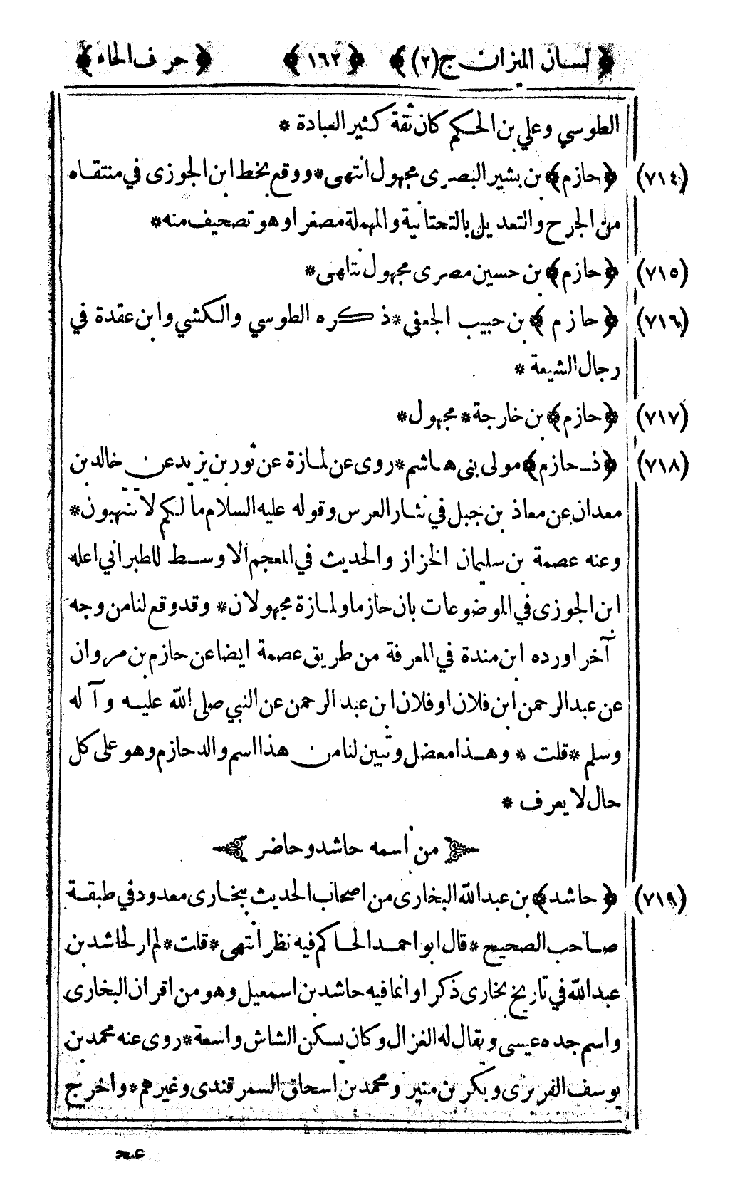 [715] "حازم" بن حسين مصري مجهول انتهى.