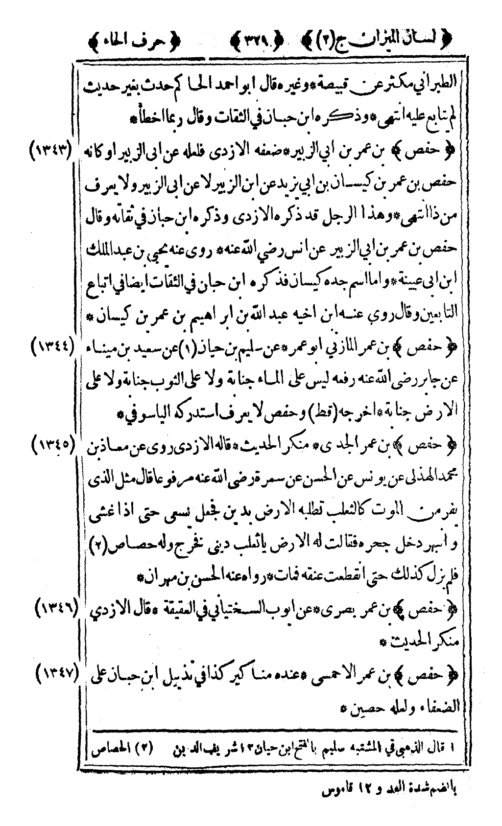 [1347] "حفص" بن عمر الأحمسي عنده مناكير كذا في تذييل بن حبان على الضعفاء ولعله حصين.
