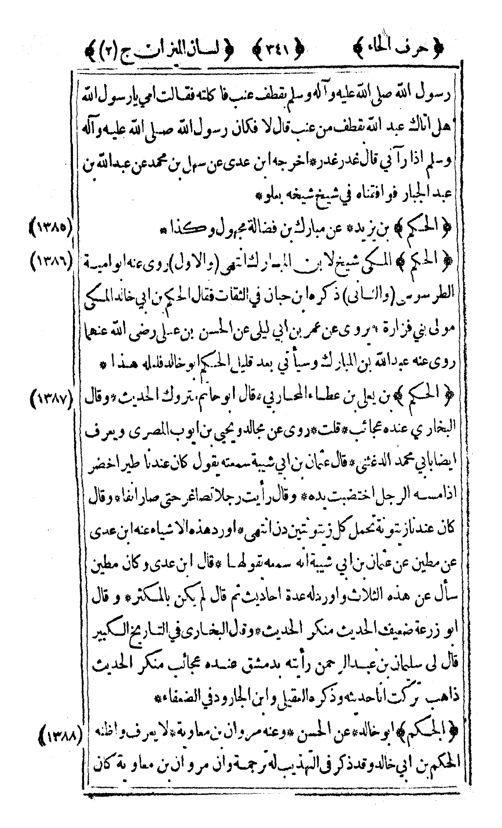 [1386] "الحكم" المكي شيخ لابن المبارك انتهى والأول روى عنه أبو أمية الطرسوسي والثاني ذكره ابن حبان في الثقات فقال الحكم بن أبي خالد المكي مولى بني فزارة يروي عن عمر بن أبي ليلى عن الحسن بن علي رضى الله عنهما روى عنه عبد الله ابن المبارك وسيأتي بعد قليل الحكم أبو خالد فلعله هذا.