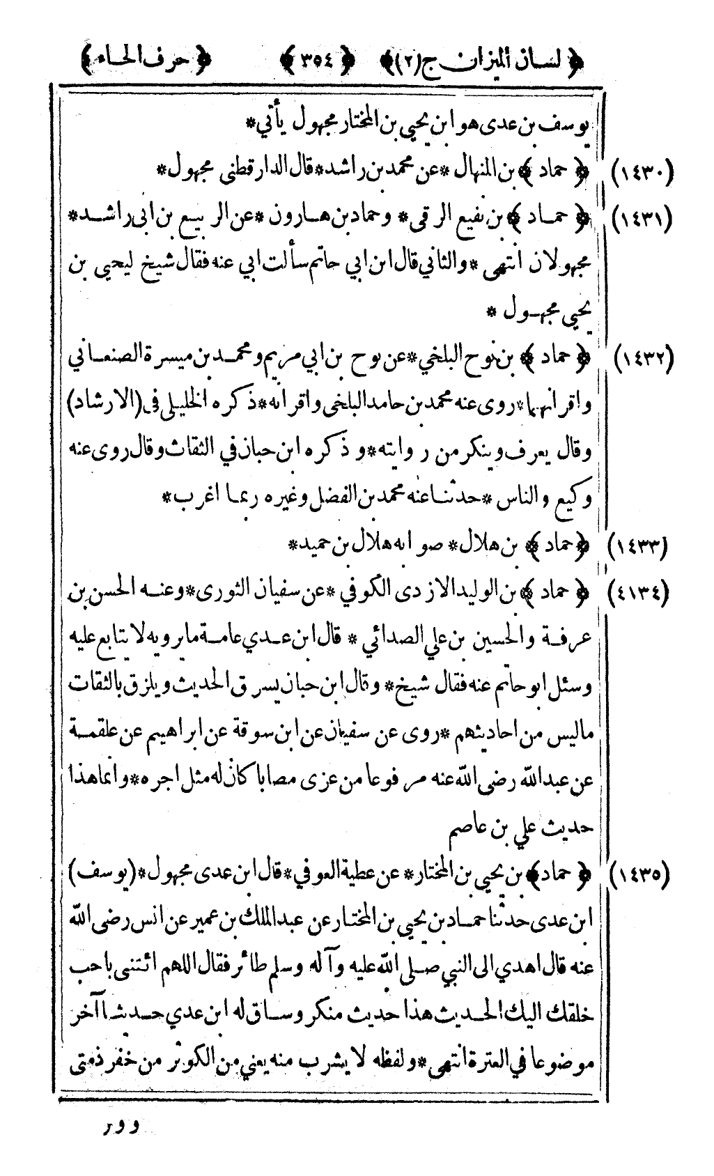 [1433] "حماد" بن هلال صوابه هلال بن حميد.