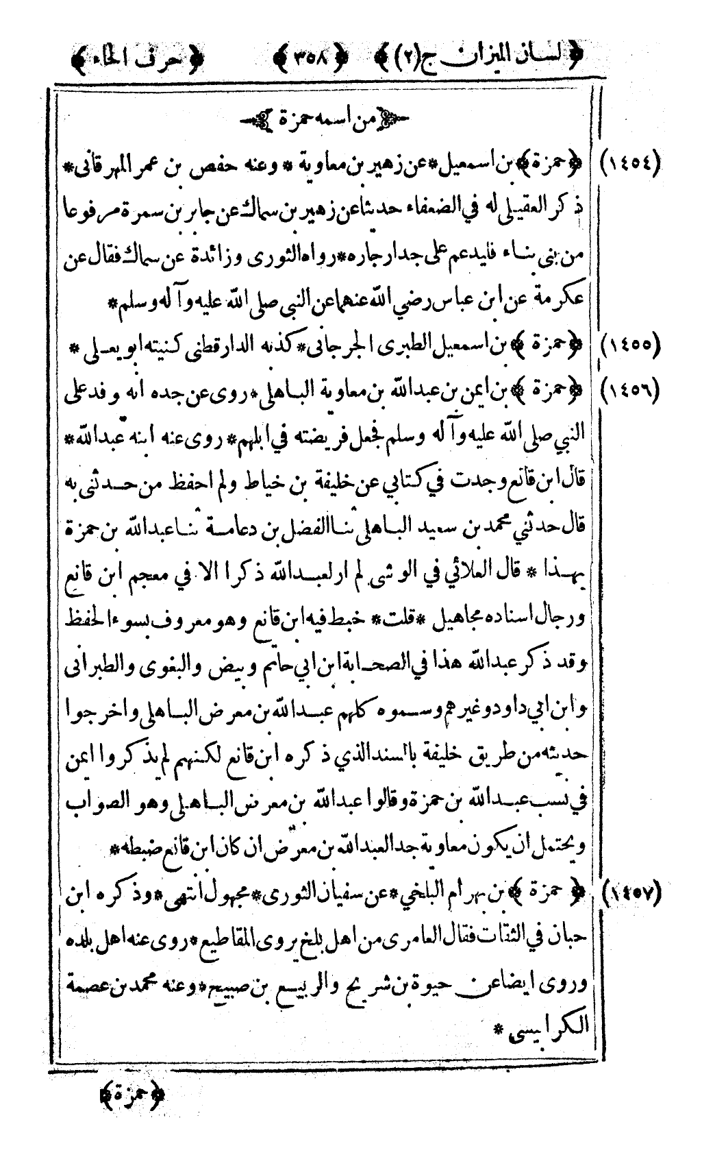 [1455] "حمزة" بن إسماعيل الطبري الجرجاني كذبه الدارقطني كنيته أبو يعلى.