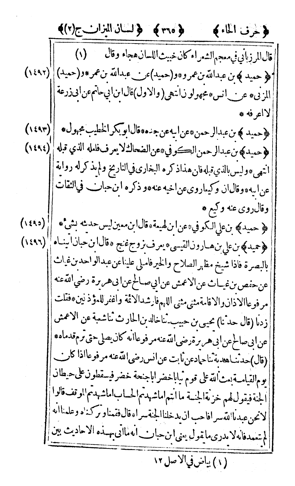 [1492] "حميد" بن عبد الله ابن عمرو وحميد عن عبد الله ابن عمر وحميد المزني عن أنس مجهولون انتهى والأول قال ابن أبي حاتم عن أبي زرعة لا أعرفه.