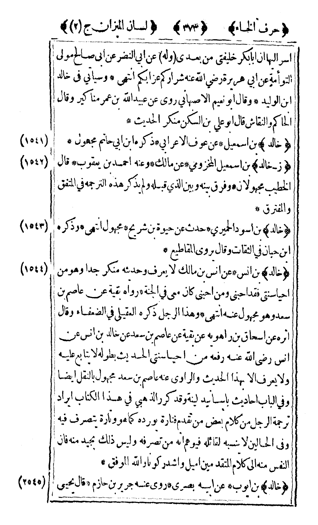 [1541] "خالد" بن إسماعيل عن عوف الأعرابي ذكره ابن أبي حاتم مجهول.