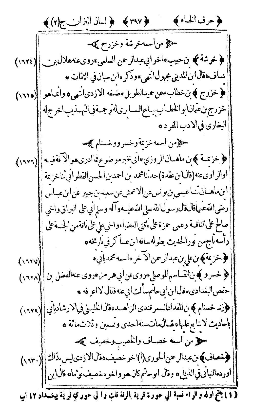 [1630] "خصاف" بن عبد الرحمن الحوري1 أخو خصيف قال الأزدي ليس بذاك أورده النباتي في الذيل وقال أبو حاتم كان هو وأخوه خصيف توأما قال ابن