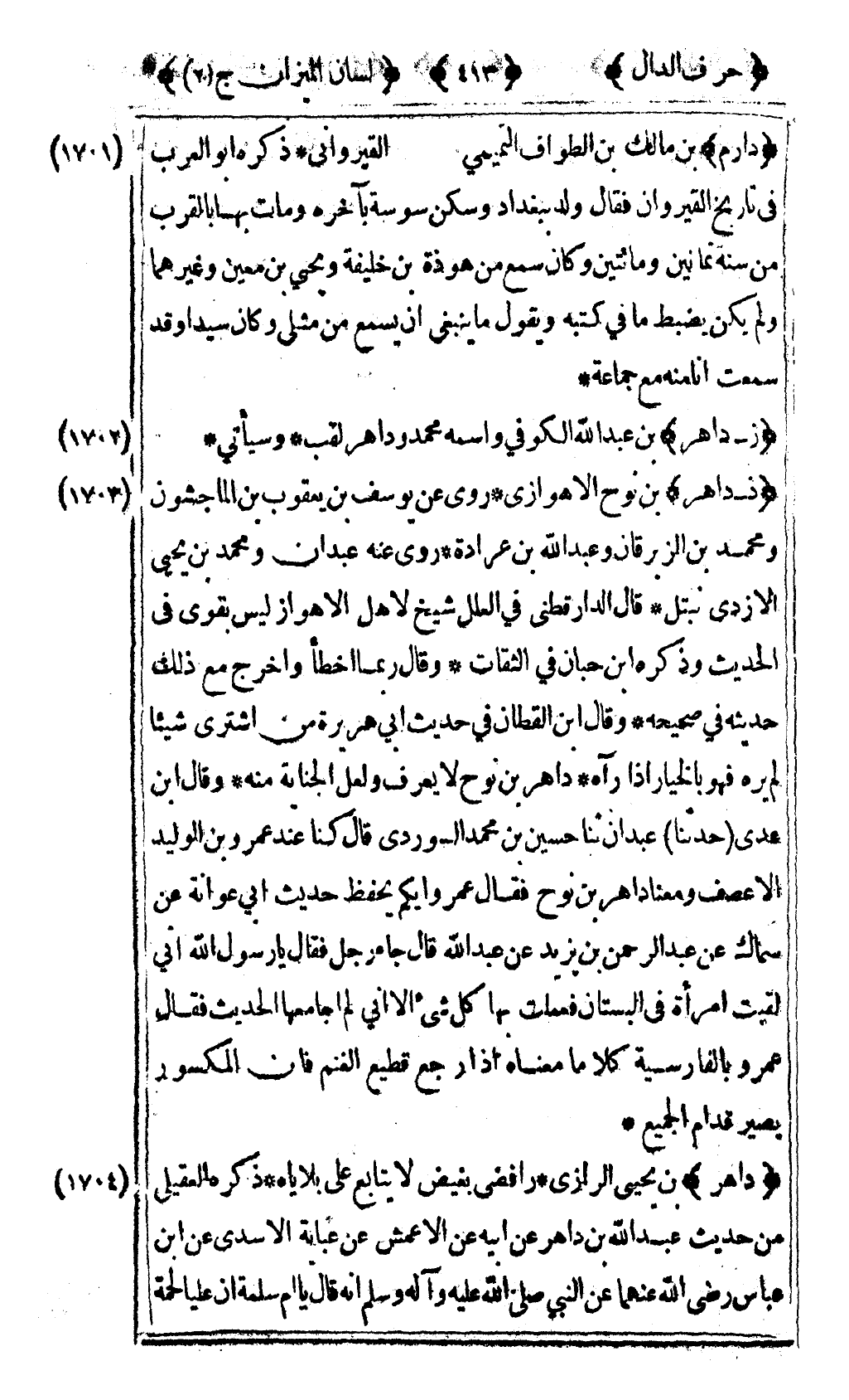 [1702] "ز- داهر" بن عبد الله الكوفي واسمه محمد وداهر لقب وسيأتي.