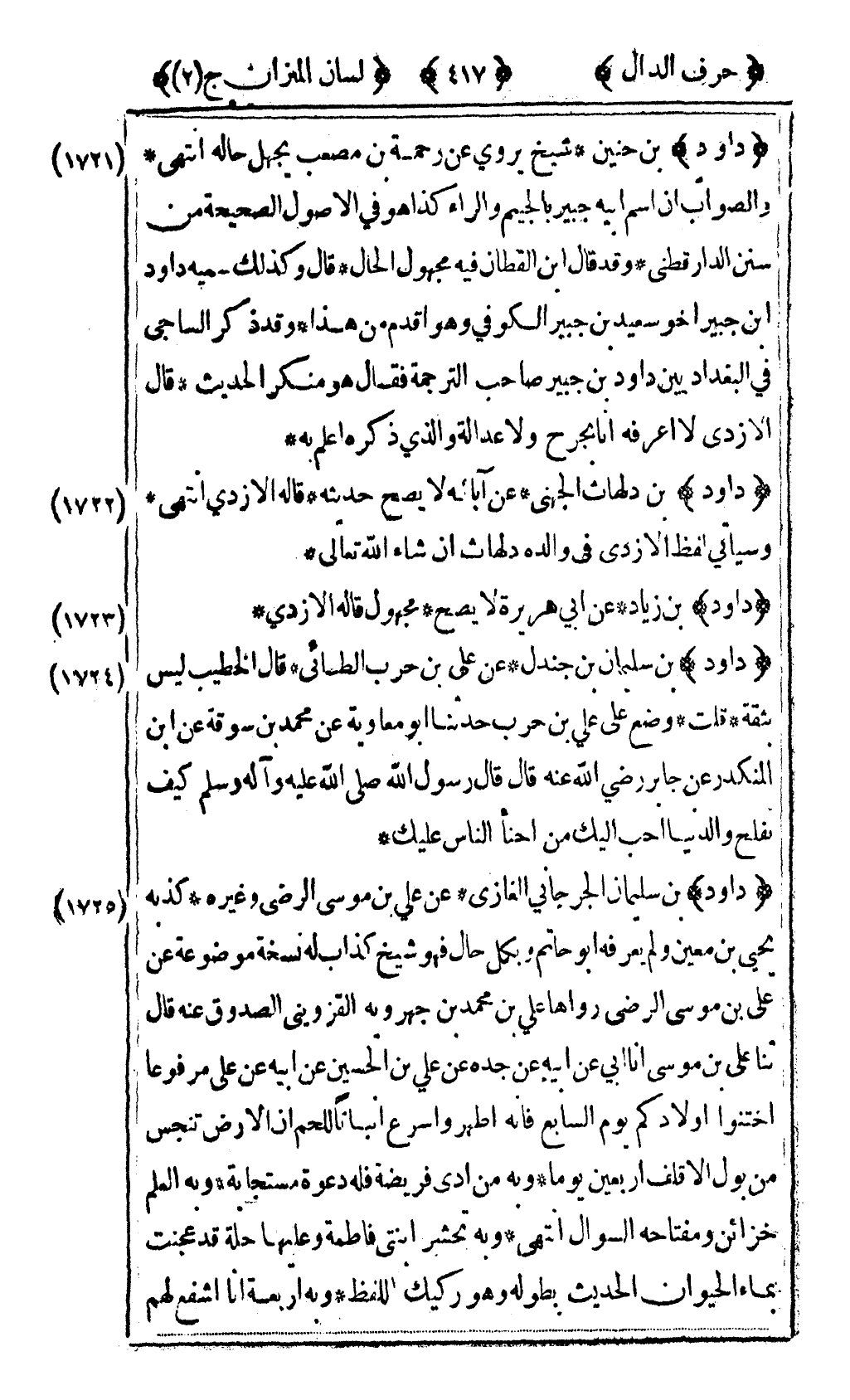 [1722] "داود" بن دلهاث الجهني عن آبائه لا يصح حديثه قاله الأزدي انتهى وسيأتي لفظ الأزدي في والده دلهاث ان شاء الله تعالى.