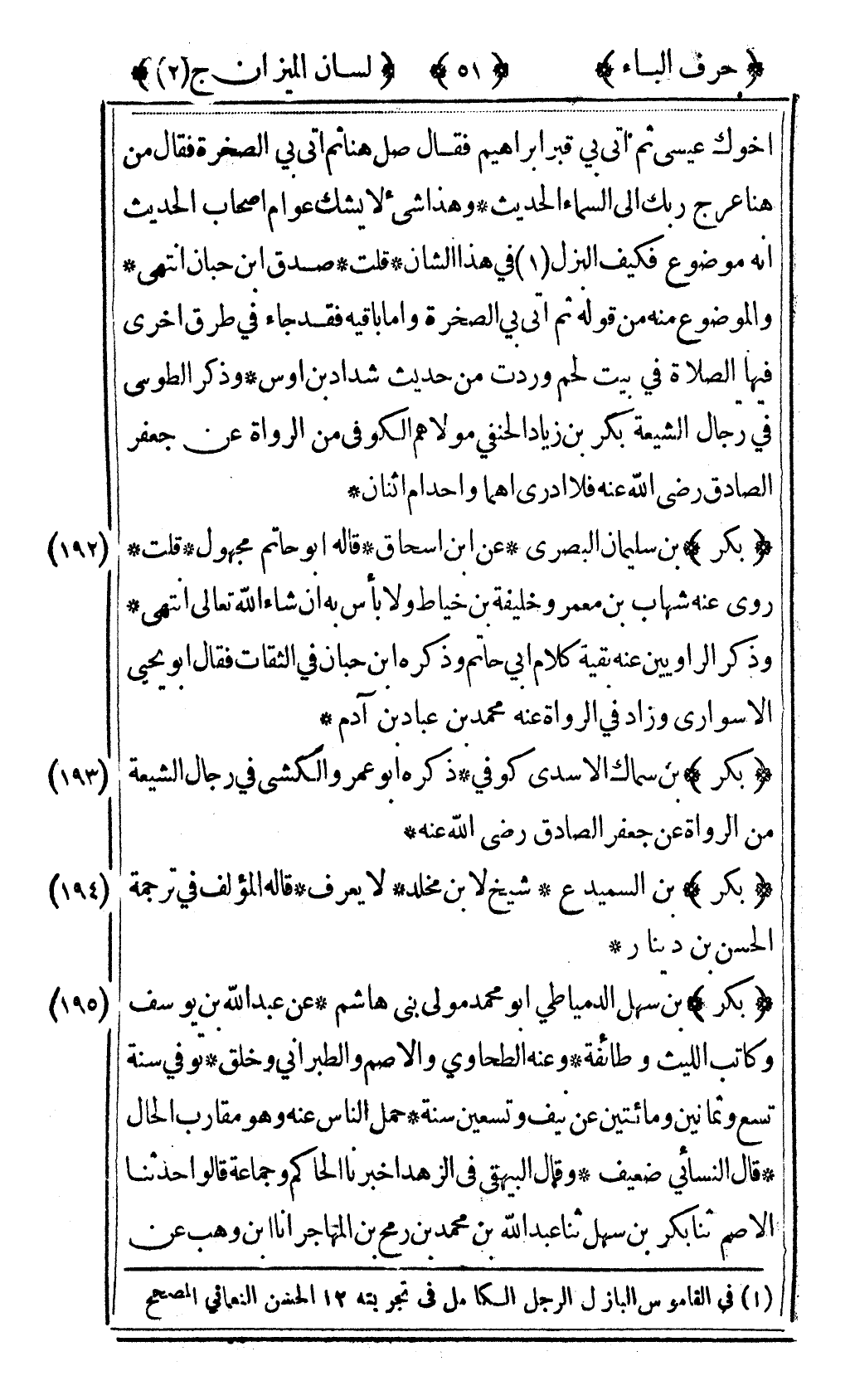 [193] "بكر" بن سماك الأسدي كوفي ذكره أبو عمرو الكشي في رجال الشيعة من الرواة عن جعفر الصادق رضى الله عنه.
