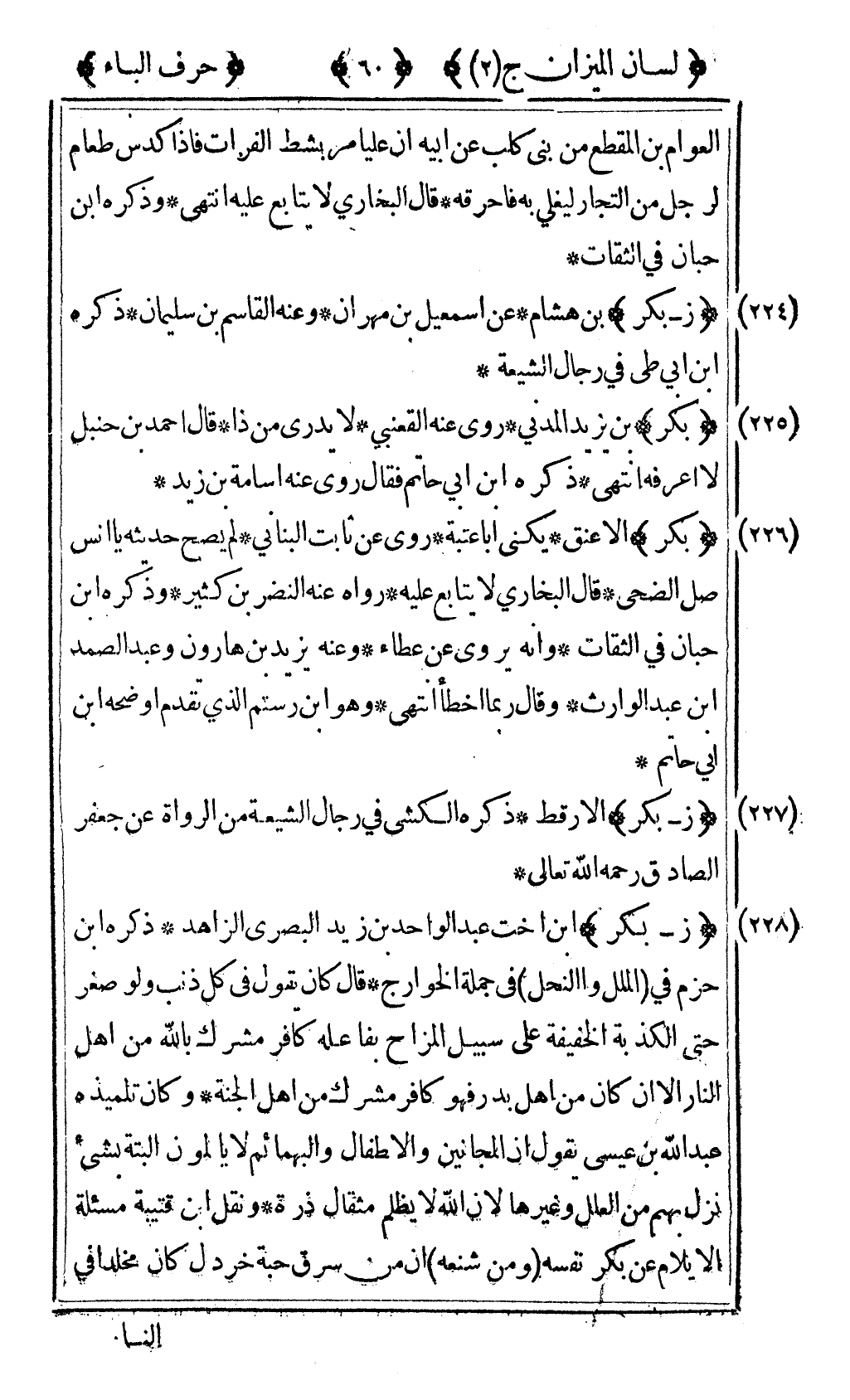 [227] "ز- بكر" الأرقط ذكره الكشي في رجال الشيعة من الرواة عن جعفر الصادق رحمه الله تعالى.
