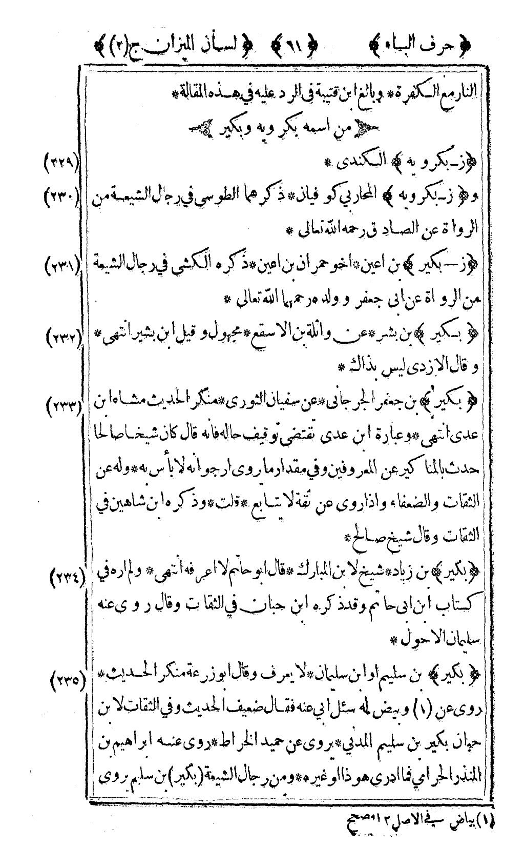 [231] "ز- بكير" بن أعين أخو حمران بن أعين ذكره الكشي في رجال الشيعة من الرواة عن أبي جعفر وولده رحمهما الله تعالى.