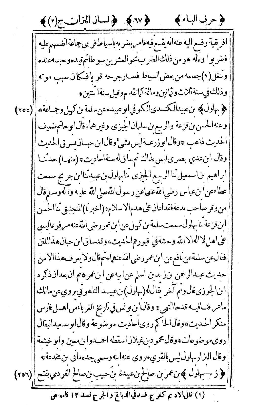 [256] "ز- بهلول" بن عمر بن صالح بن عبيدة بن حبيب بن صالح الفردمي بفتح