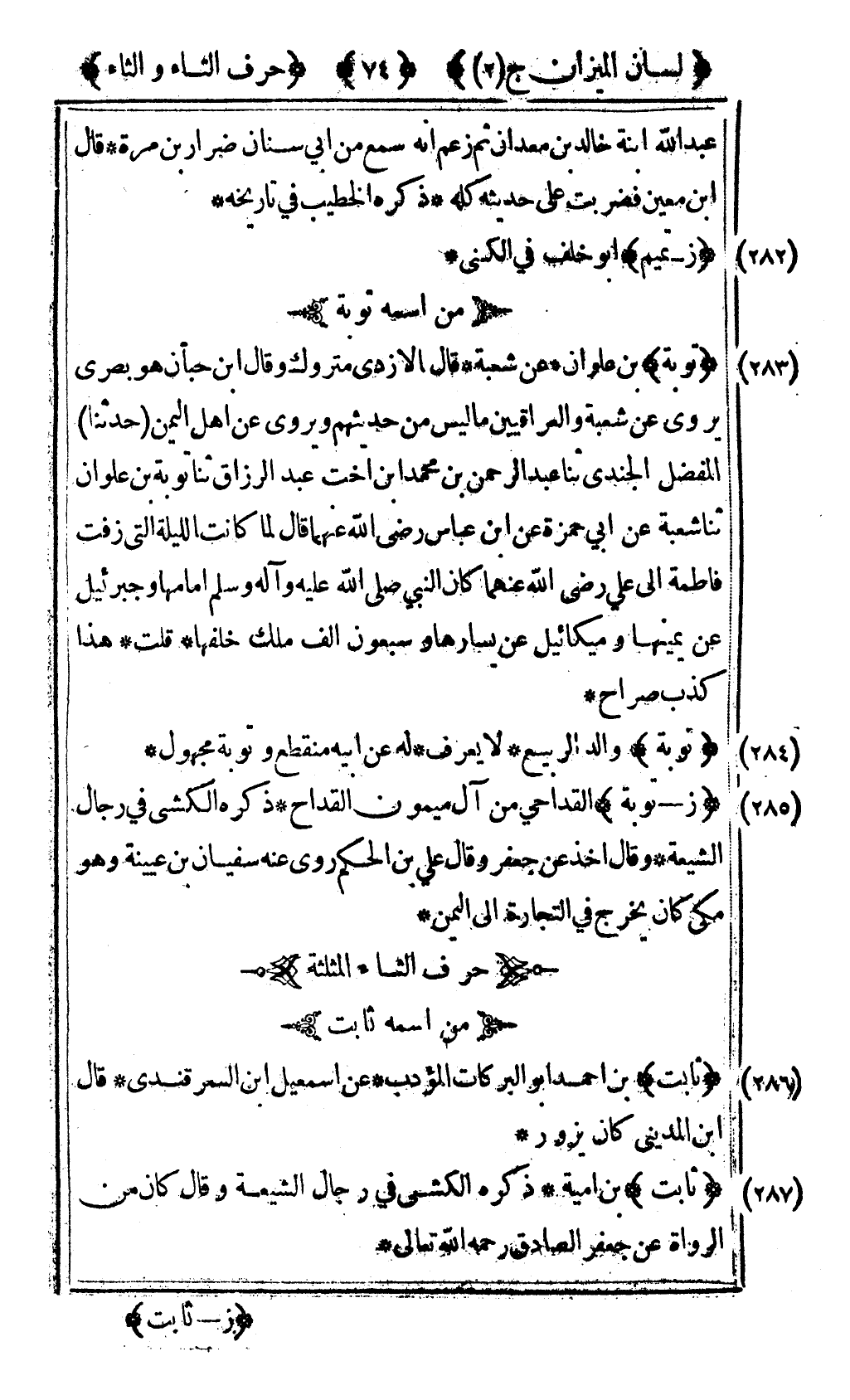 [287] "ثابت" بن أمية ذكره الكشي في رجال الشيعة وقال كان من الرواة عن جعفر الصادق رحمه الله تعالى.