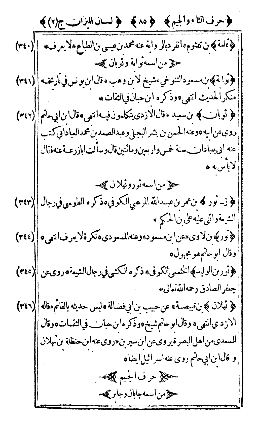 [340] "ثمامة" بن كلثوم انفرد بالرواية عنه محمد بن عيسى بن الطباع لا يعرف.