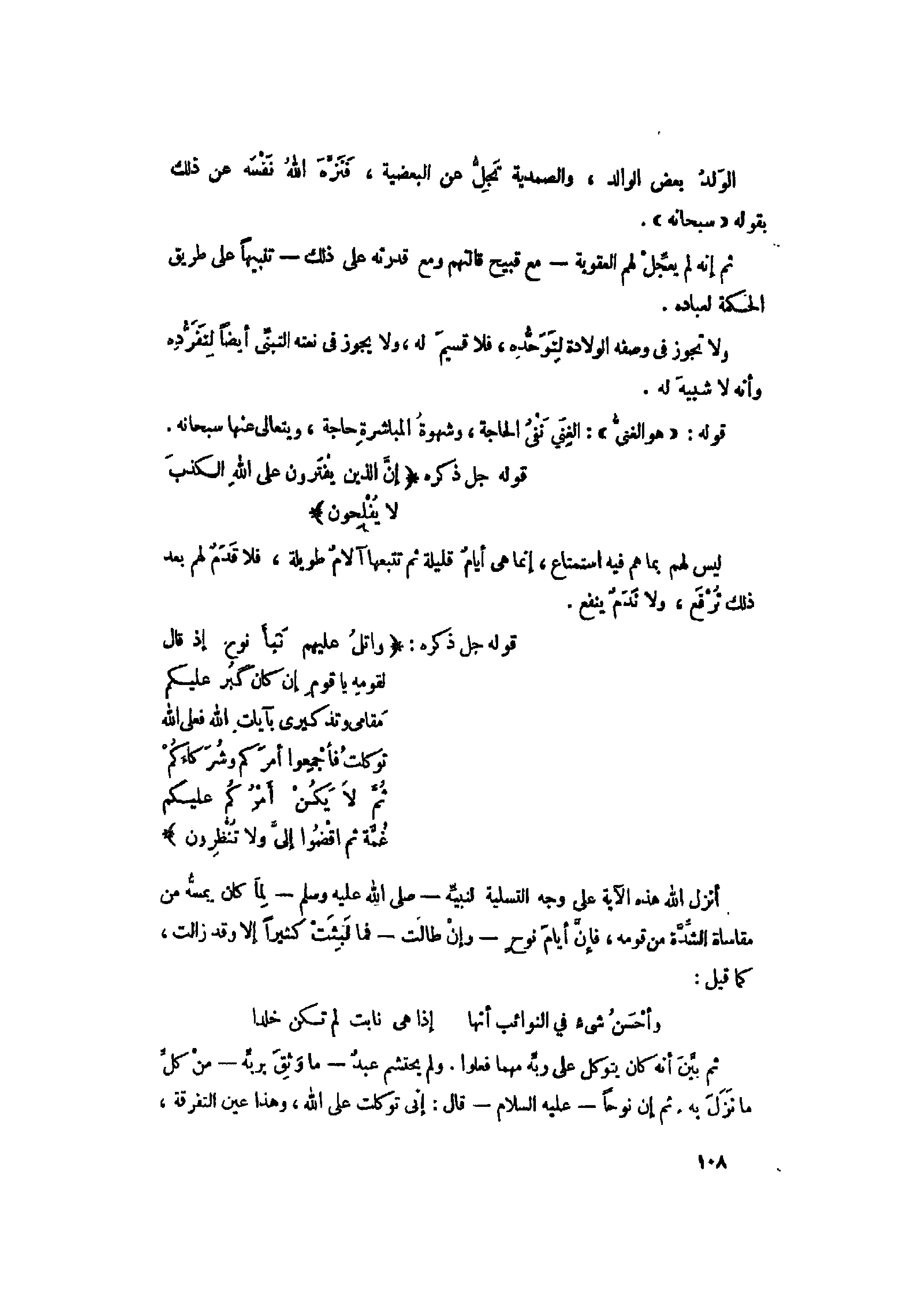 ولا تجوز فى وصفه الولادة لتوحّده، فلا قسيم له، ولا يجوز فى نعته التبنّي أيضا لتفرّده وأنه لا شبيه له.