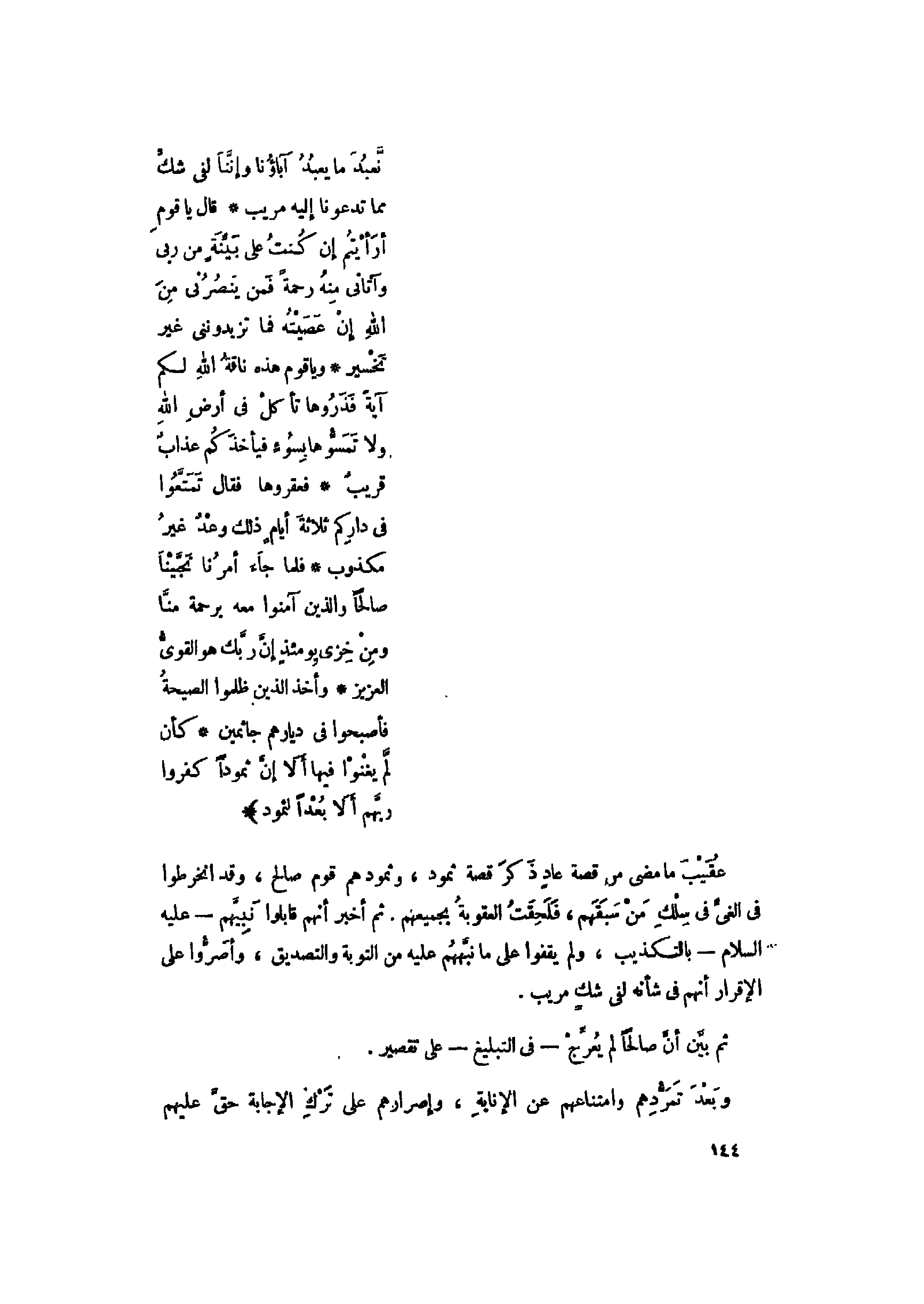 عقيب ما مضى من قصة عاد ذكر قصة ثمود، وثمودهم قوم صالح، وقد انخرطوا فى الغىّ فى سلك من سبقهم، فلحقت العقوبة بجميعهم. ثم أخبر أنهم قابلوا نبيّهم- عليه السلام- بالتكذيب، ولم يقفوا على ما نبّههم عليه من التوبة والتصديق، وأصرّوا على الإقرار أنهم فى شأنه لفى شك مريب.
