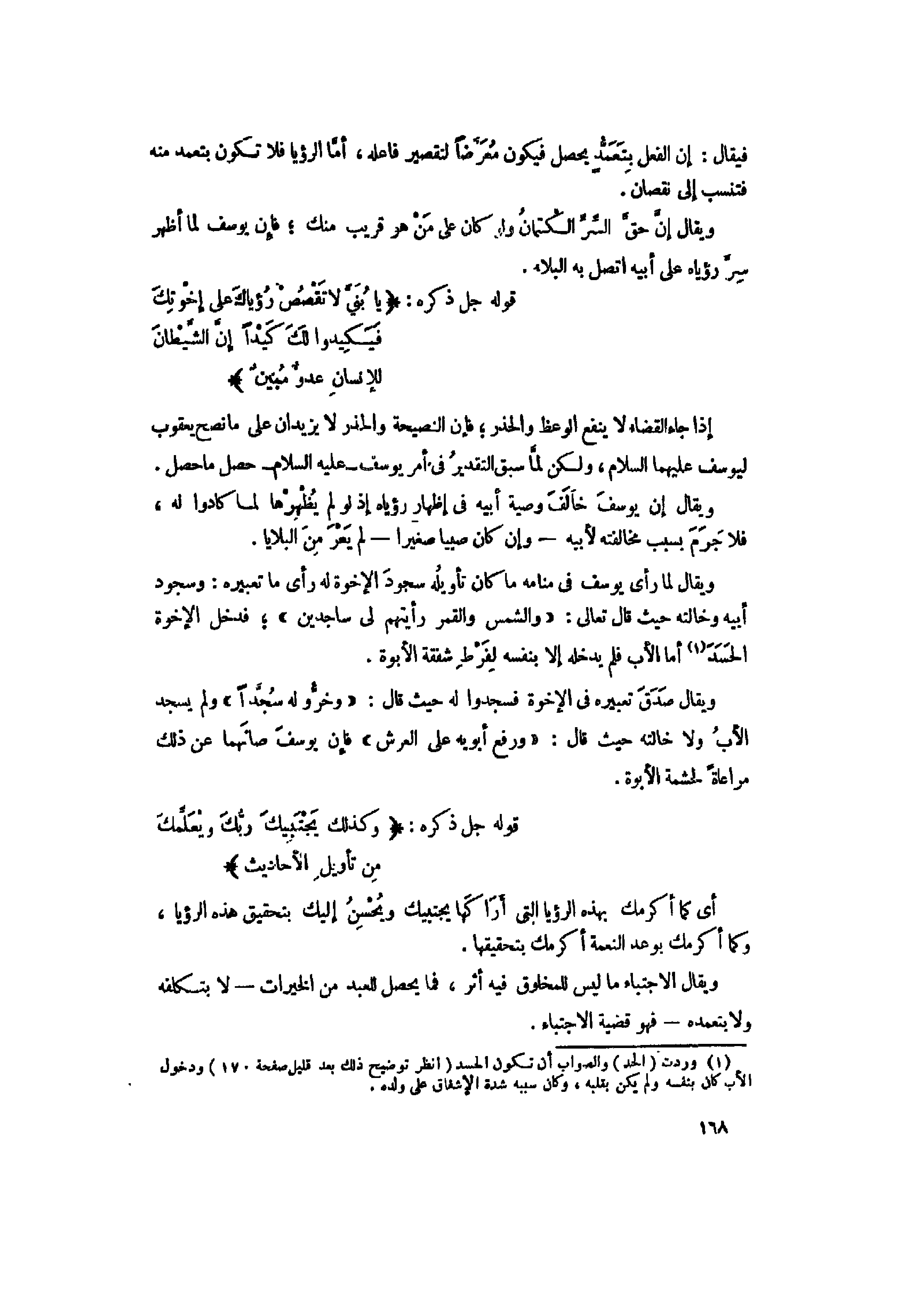 (1) وردت (الحد) والصواب أن تكون الحسد (انظر توضيح ذلك بعد قليل صفحة 170) ودخول الأب كان بنفسه ولم يكن بقلبه، وكان سببه شدة الإشفاق على ولده.