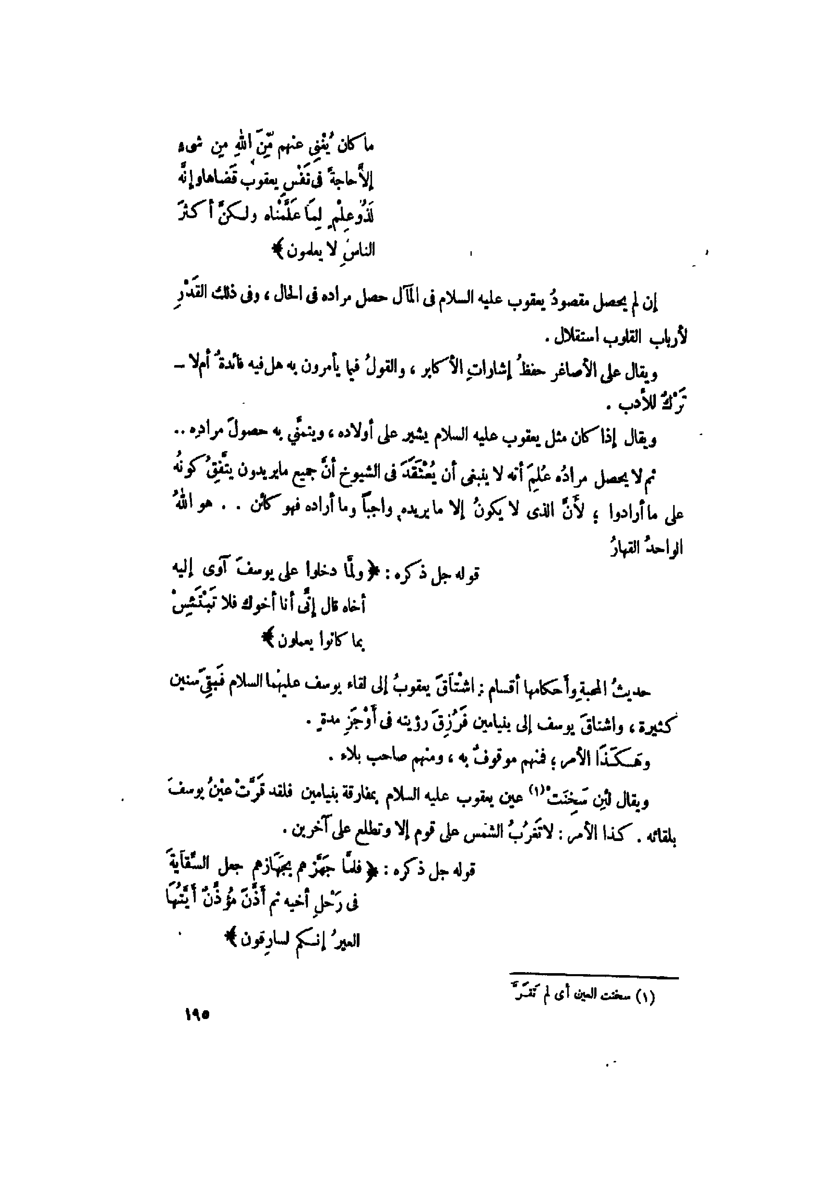 ويقال إذا كان مثل يعقوب عليه السلام يشير على أولاده، ويتمنّي به حصول مراده..