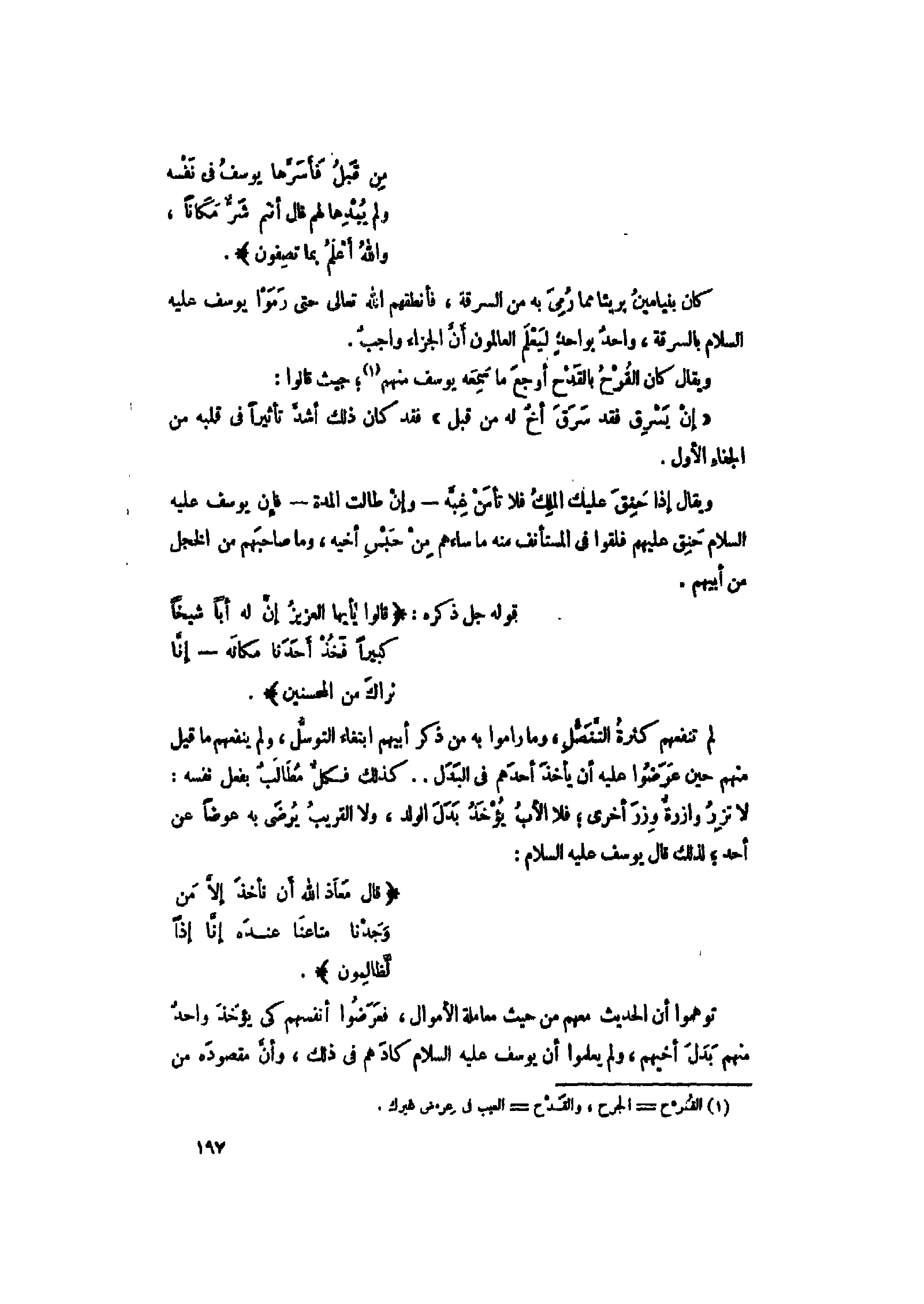 «إِنْ يَسْرِقْ فَقَدْ سَرَقَ أَخٌ لَهُ مِنْ قَبْلُ» فقد كان ذلك أشدّ تأثيرا فى قلبه من الجفاء الأول.
