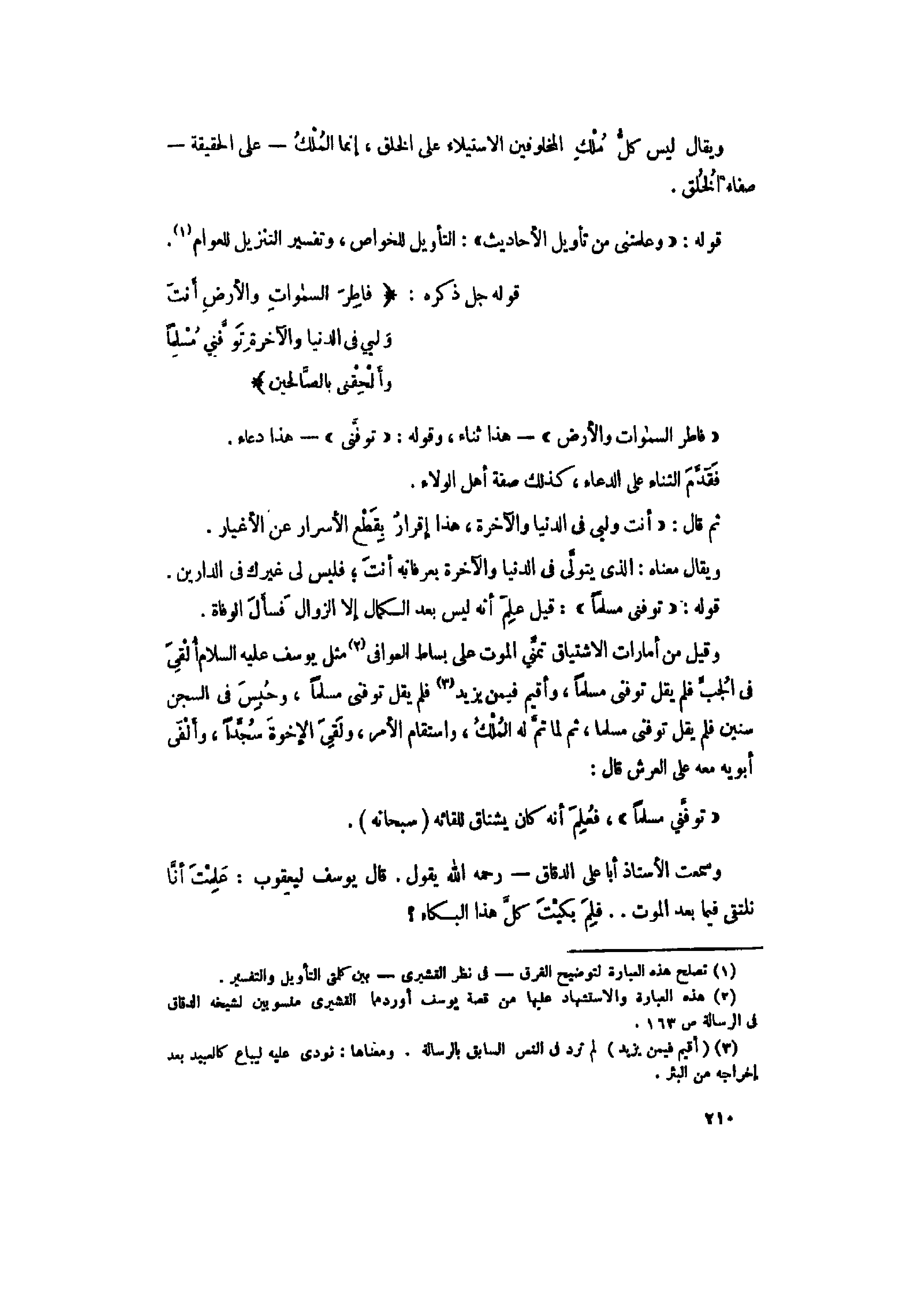 (2) هذه العبارة والاستشهاد عليها من قصة يوسف أوردهما القشيري منسوبين لشيخه الدقاق فى الرسالة ص 163.