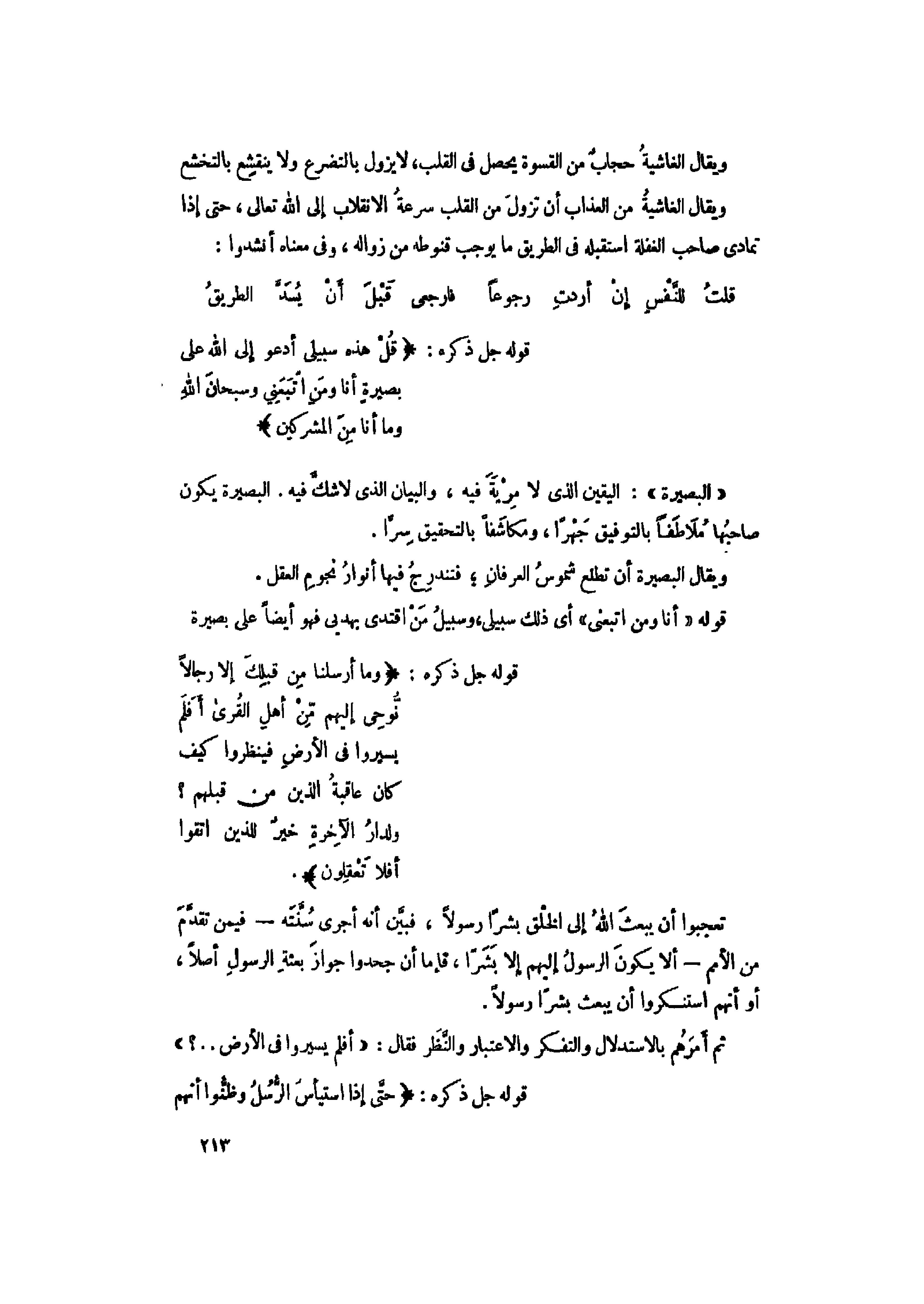 قوله «أَنَا وَمَنِ اتَّبَعَنِي» أي ذلك سبيلى، وسبيل من اقتدى بهداي فهو أيضا على بصيرة قوله جل ذكره: