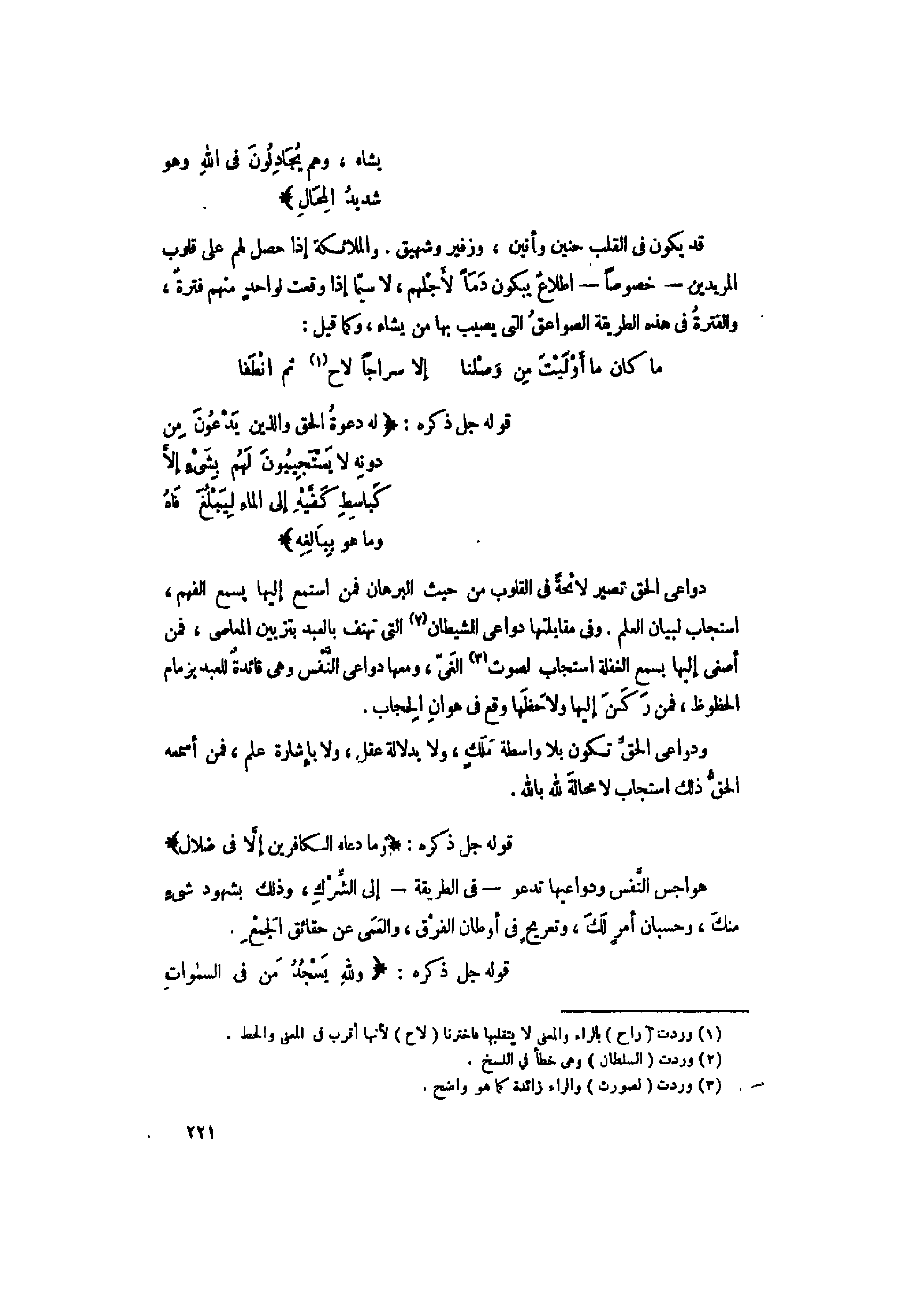 (1) وردت (راح) بالراء والمعنى لا يتقلبها فاخترنا (لاح) لأنها أقرب فى المعنى والخط.