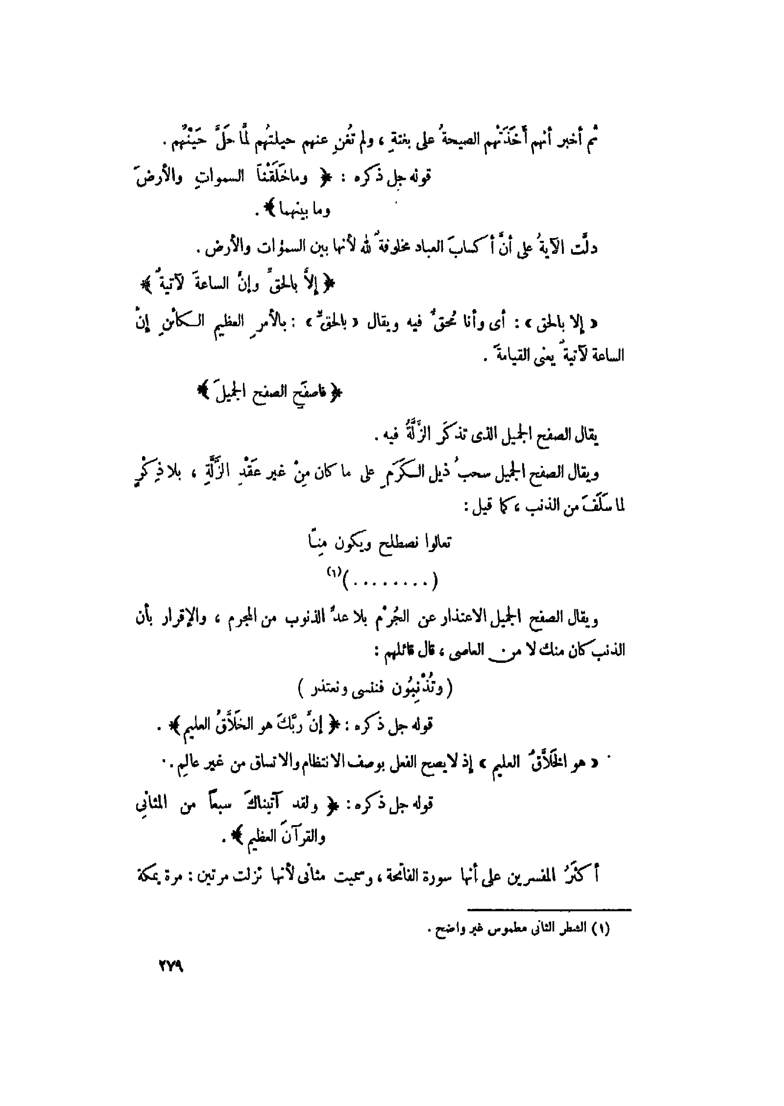 فَاصْفَحِ الصَّفْحَ الْجَمِيلَ يقال الصفح الجميل الذي تذكر الزّلّة فيه.
