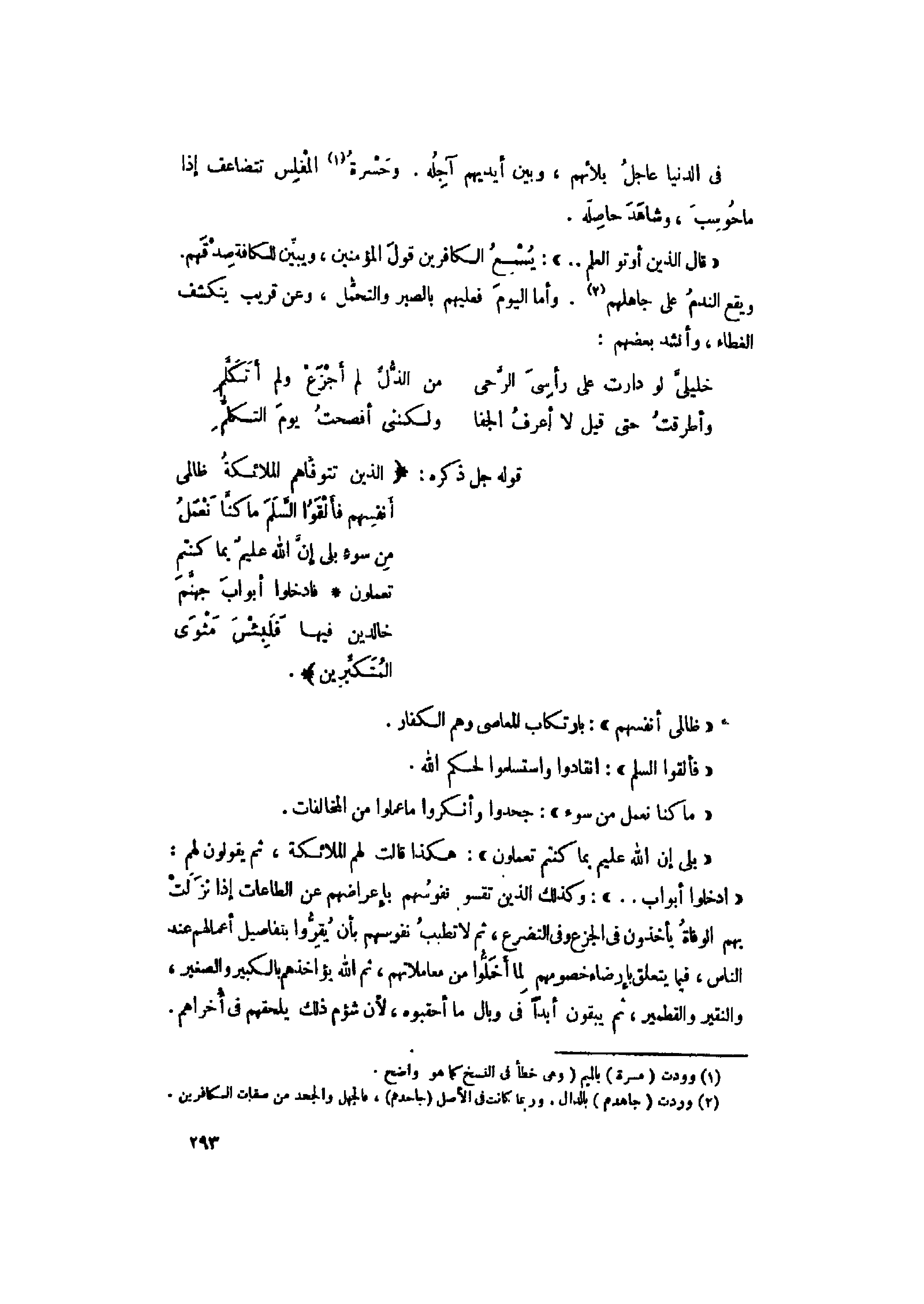 (2) وردت (جاهدهم) بالدال. وربما كانت فى الأصل (جاحدهم) ، فالجهل والجحد من صفات الكافرين.