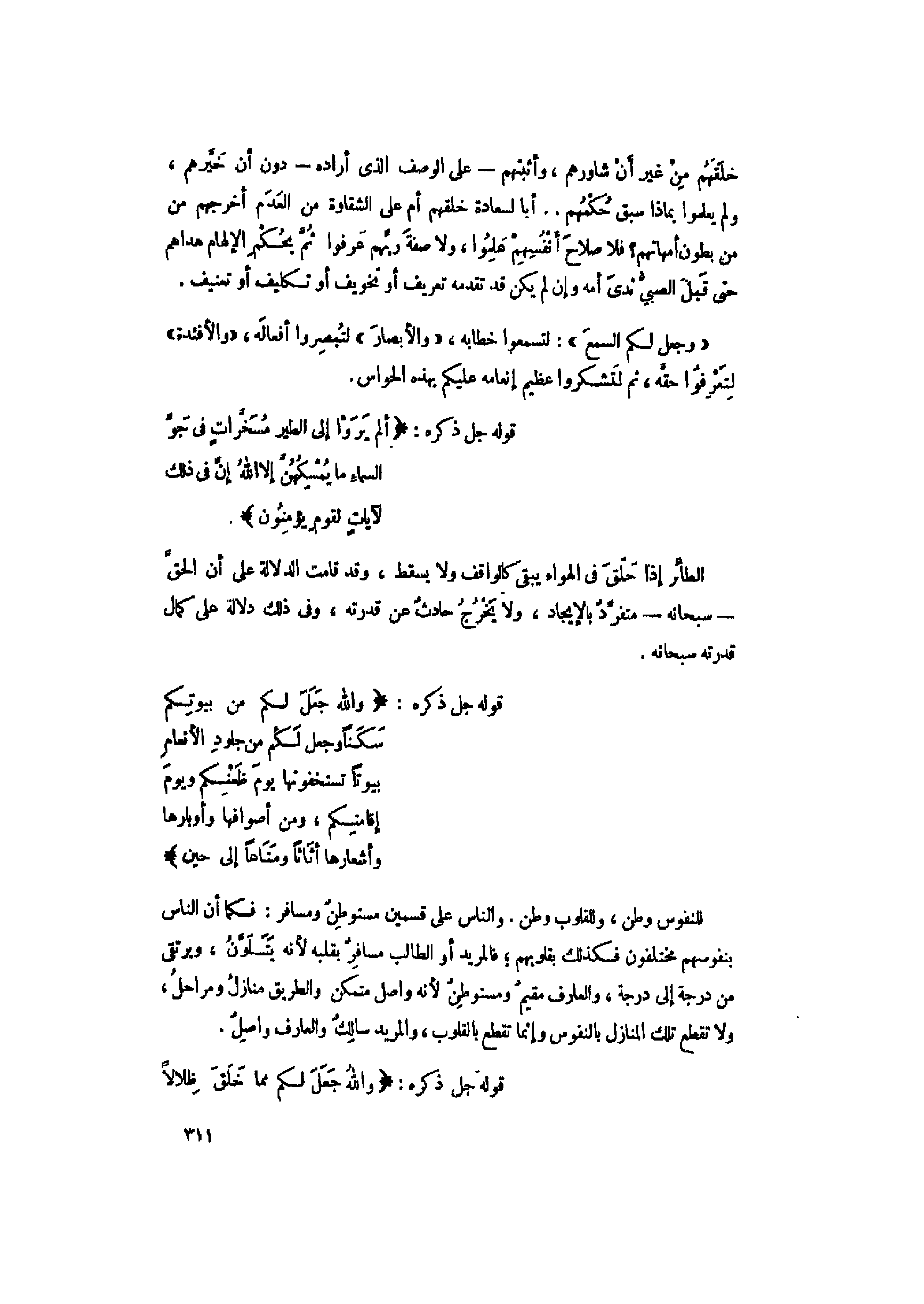 خلقهم من غير أن شاورهم، وأثبتهم- على الوصف الذي أراده- دون أن خيّرهم، ولم يعلموا بماذا سبق حكمهم.. أبا لسعادة خلقهم أم على الشقاوة من العدم أخرجهم من من بطون أمهاتهم؟ فلا صلاح أنفسهم علموا، ولا صفة ربّهم عرفوا ثمّ بحكم الإلهام هداهم حتى قبل الصبيّ ثدى أمه وإن لم يكن قد تقدمه تعريف أو تخويف أو تكليف أو تعنيف.