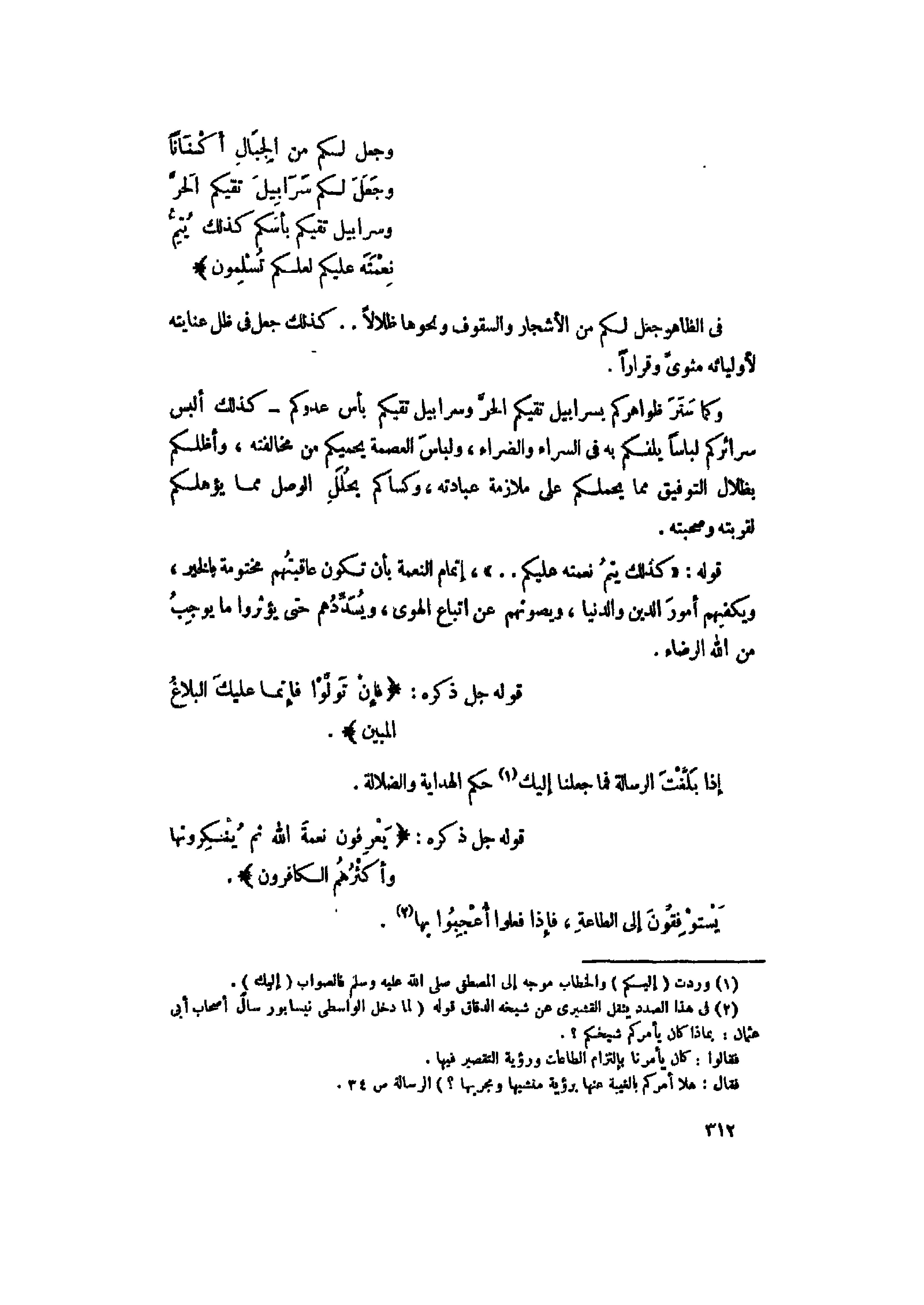 قوله: «كَذلِكَ يُتِمُّ نِعْمَتَهُ عَلَيْكُمْ..» ، إتمام النعمة بأن تكون عاقبتهم مختومة بالخير، ويكفيهم أمور الدين والدنيا، ويصونهم عن اتباع الهوى، ويسدّدهم حتى يؤثروا ما يوجب من الله الرضاء.