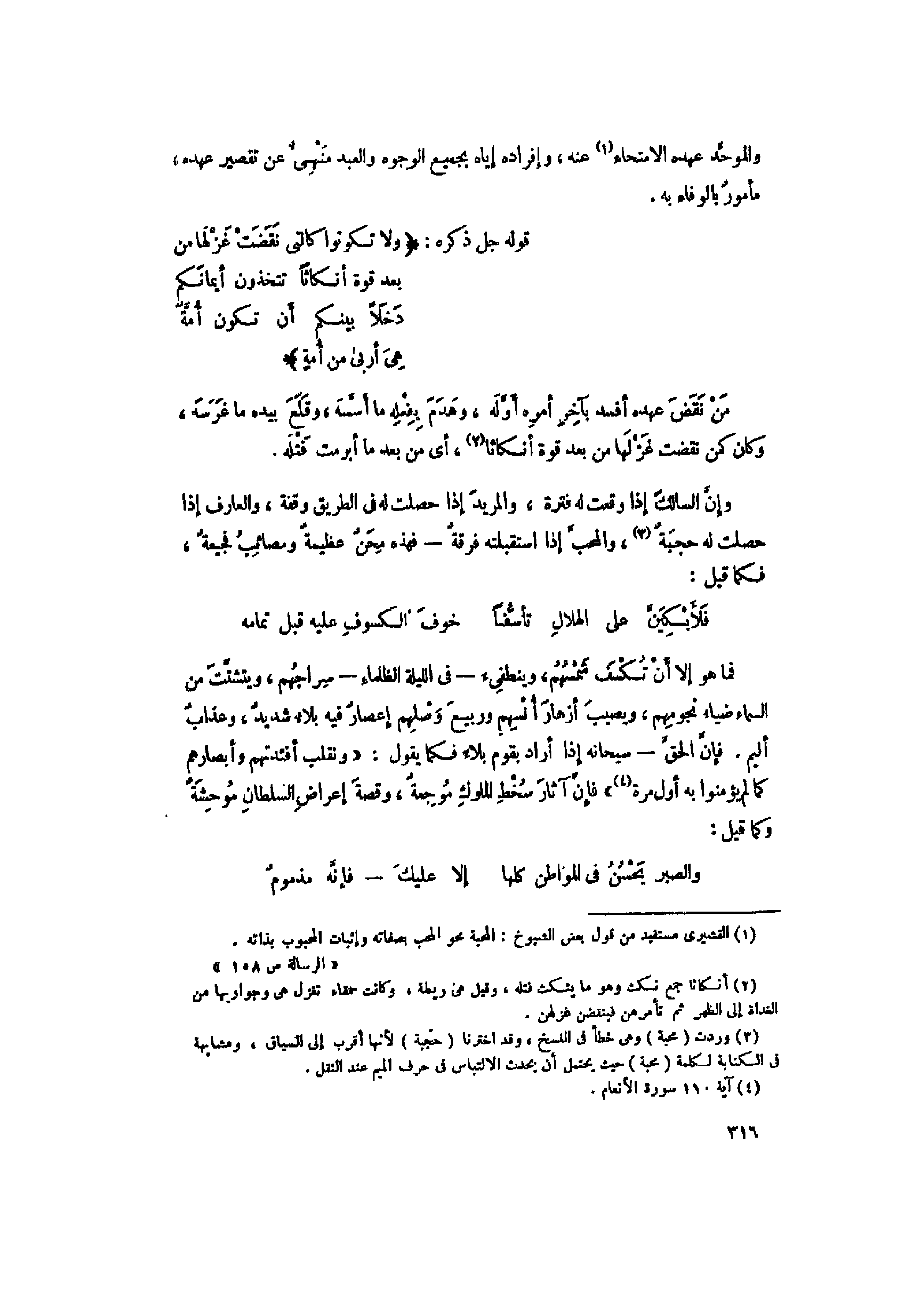 (1) القشيري مستفيد من قول بعض الشيوخ: المحبة محو المحب بصفاته وإثبات المحبوب بذاته.