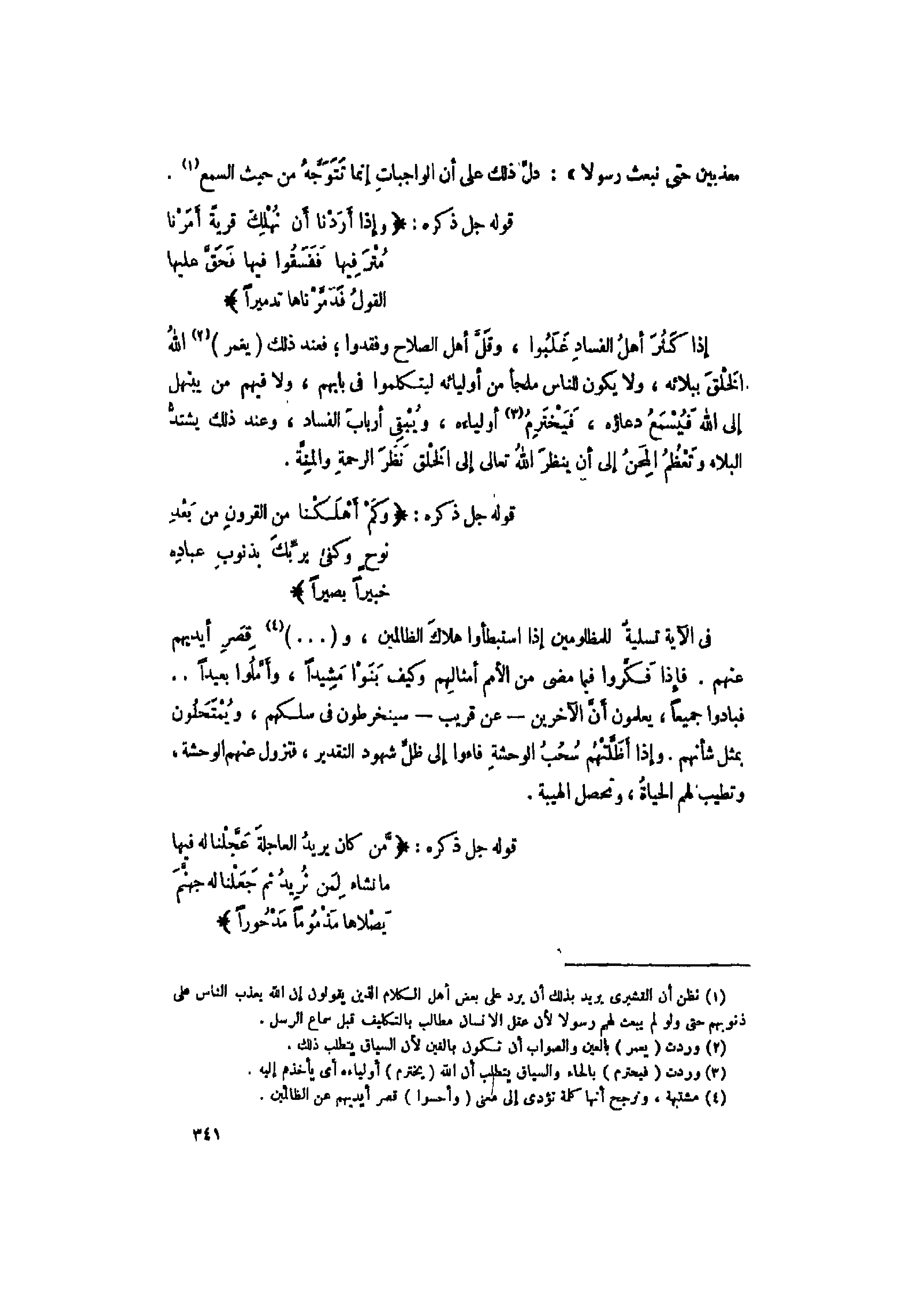 (1) نظن أن القشيري يريد بذلك أن يرد على بعض أهل الكلام الذين يقولون إن الله يعذب الناس على ذنوبهم حتى ولو لم يبعث لهم رسولا لأن عقل الإنسان مطالب بالتكليف قبل سماع الرسل. [.....]