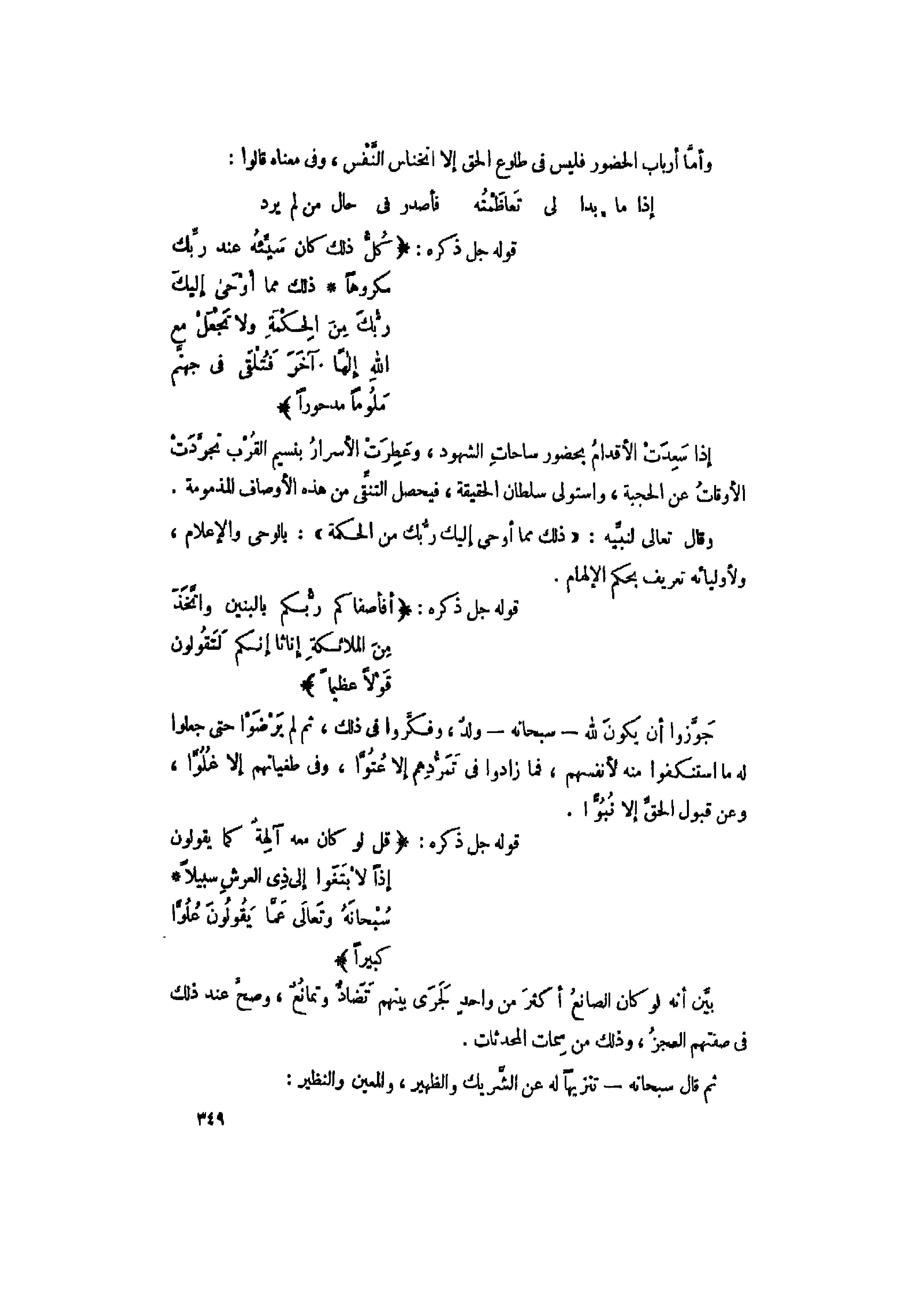 وقال تعالى لنبيّه: «ذلِكَ مِمَّا أَوْحى إِلَيْكَ رَبُّكَ مِنَ الْحِكْمَةِ» : بالوحى والإعلام، ولأوليائه تعريف بحكم الإلهام.