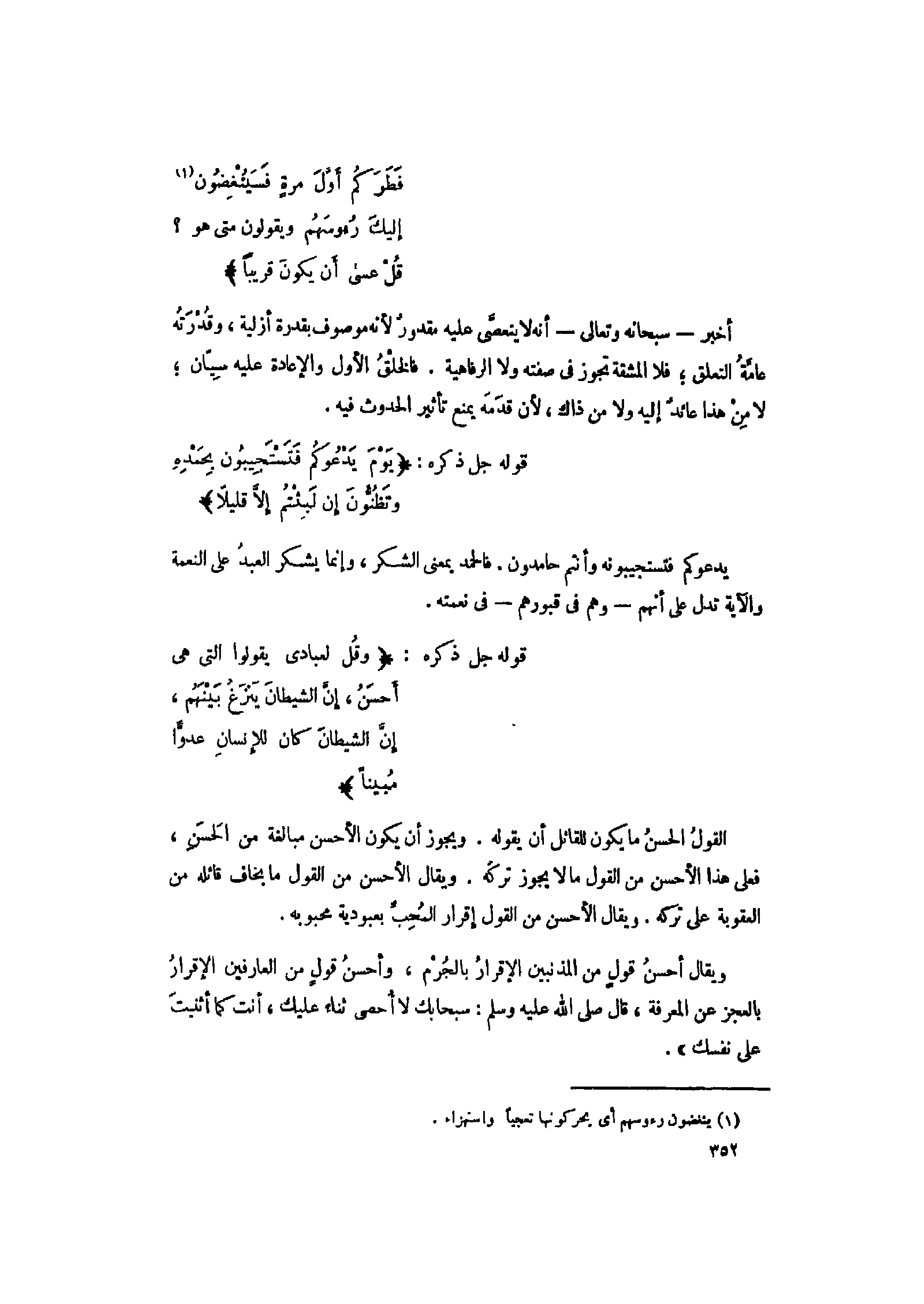 القول الحسن ما يكون للقائل أن يقوله. ويجوز أن يكون الأحسن مبالغة من الحسن، فعلى هذا الأحسن من القول ما لا يجوز تركه. ويقال الأحسن من القول ما يخاف قائله من العقوبة على تركه. ويقال الأحسن من القول إقرار المحبّ بعبودية محبوبه.