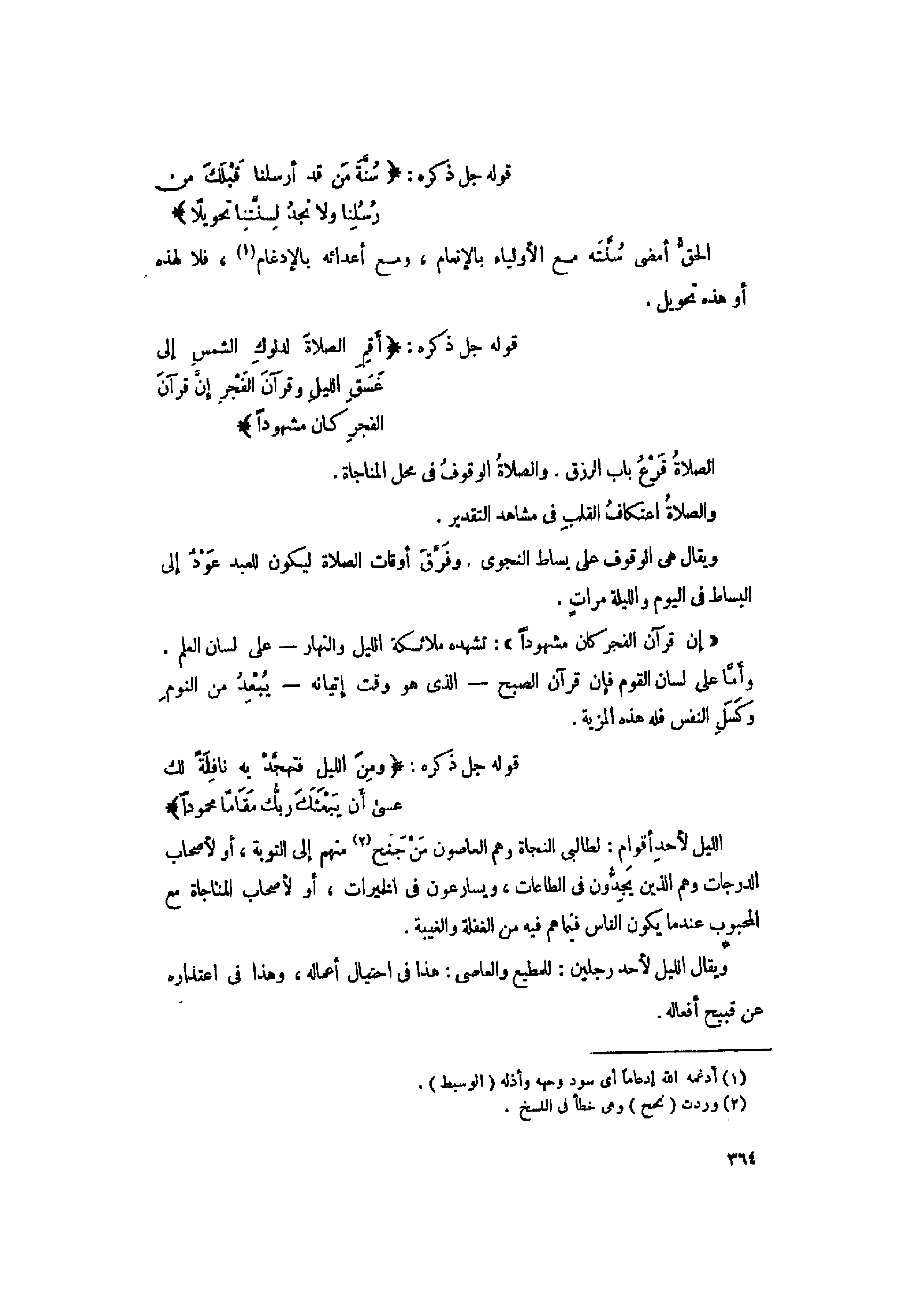 أَقِمِ الصَّلاةَ لِدُلُوكِ الشَّمْسِ إِلى غَسَقِ اللَّيْلِ وَقُرْآنَ الْفَجْرِ إِنَّ قُرْآنَ الْفَجْرِ كانَ مَشْهُوداً (78)