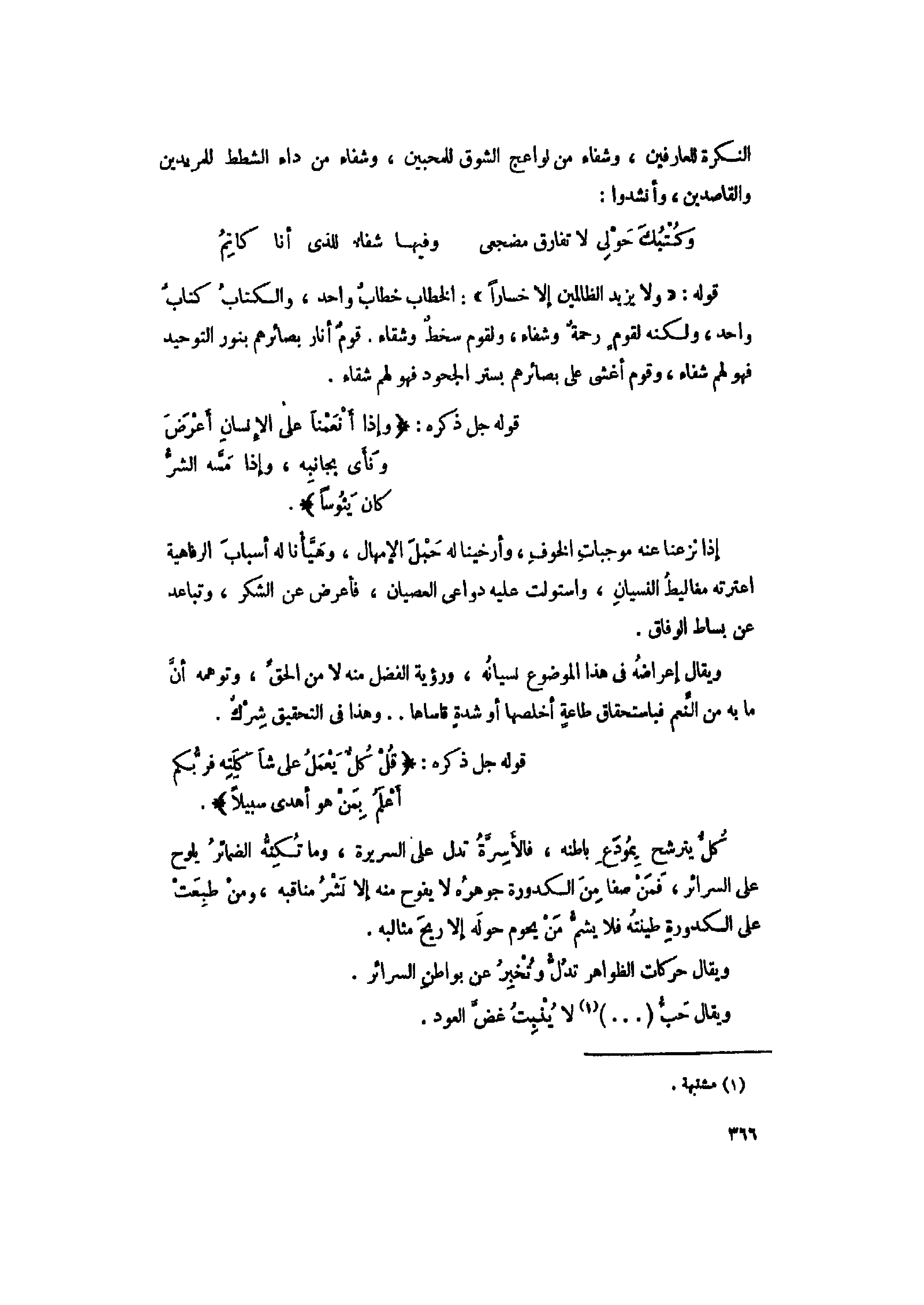 النكرة للعارفين، وشفاء من لواعج الشوق للمحبين، وشفاء من داء الشطط للمريدين والقاصدين، وأنشدوا: