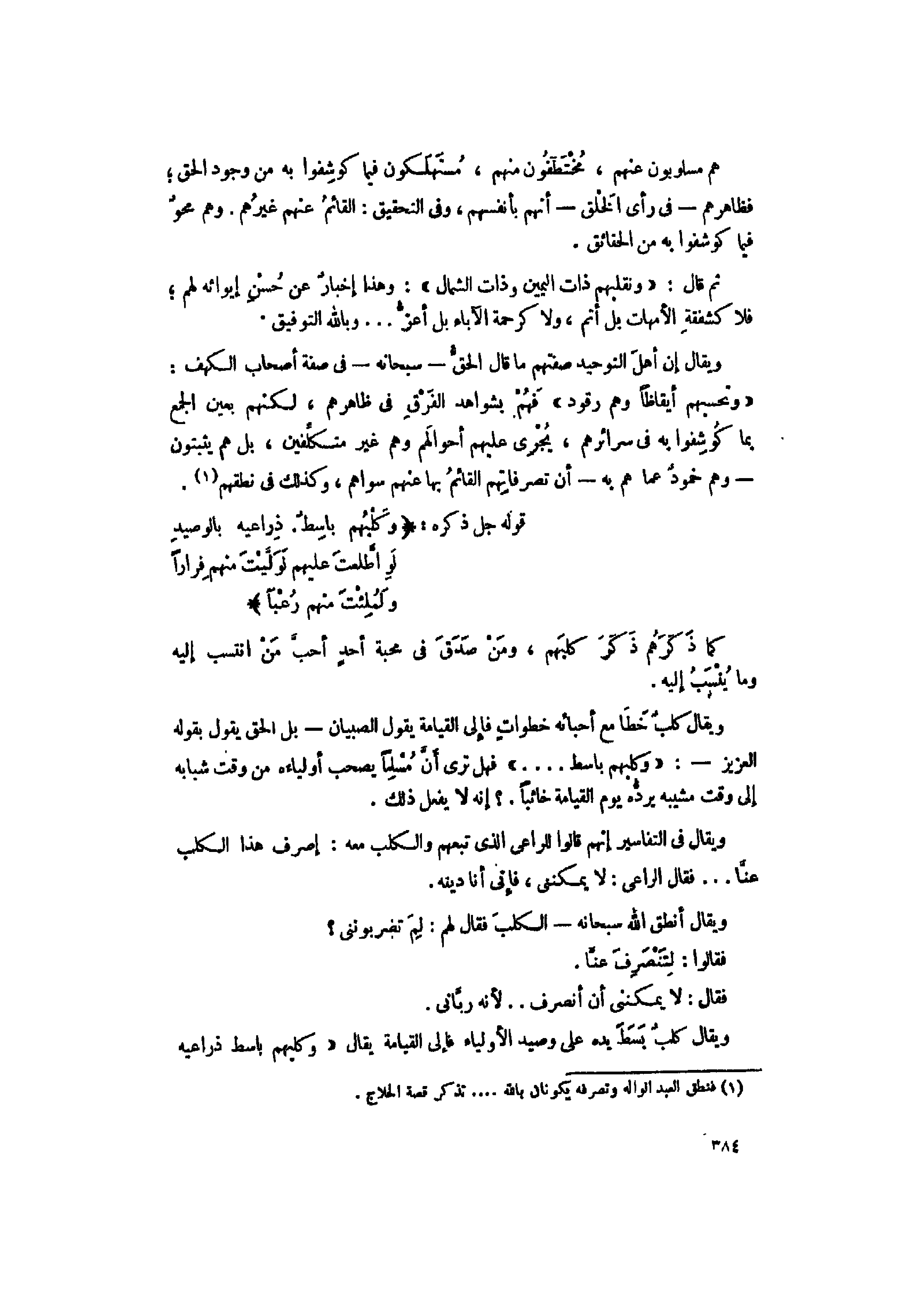 ويقال كلب خطا مع أحبائه خطوات فإلى القيامة يقول الصبيان- بل الحق يقول بقوله العزيز-: «وَكَلْبُهُمْ باسِطٌ....» فهل ترى أنّ مسلما يصحب أولياءه من وقت شبابه إلى وقت مشيبه يردّه يوم القيامة خائبا.؟ إنه لا يفعل ذلك.