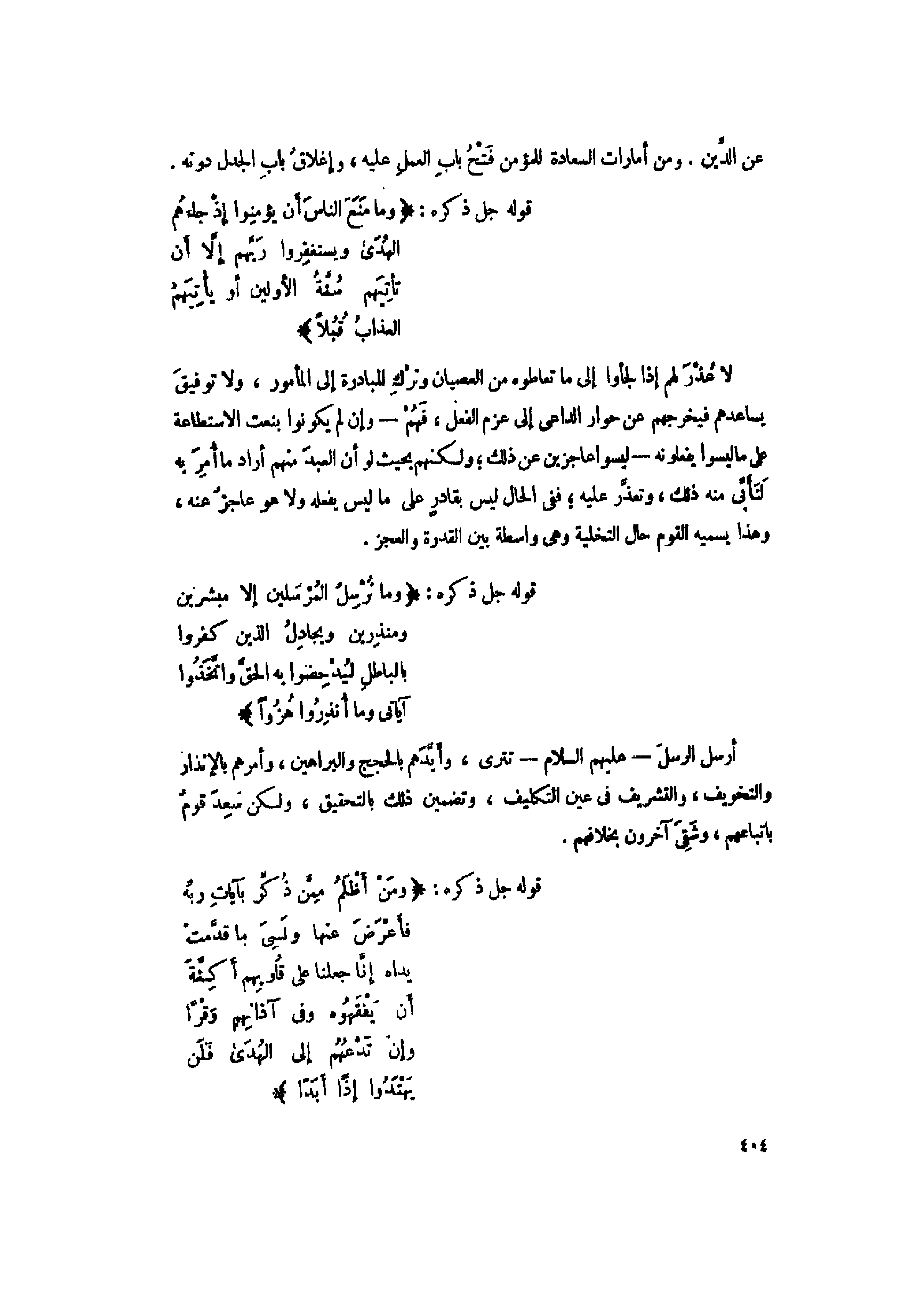 لا عذر لهم إذا لجأوا إلى ما تعاطوه من العصيان وترك المبادرة إلى المأمور، ولا توفيق يساعدهم فيخرجهم عن حوار الداعي إلى عزم الفعل، فهم- وإن لم يكونوا بنعت الاستطاعة على ما ليسوا يفعلونه- ليسوا عاجزين عن ذلك ولكنهم بحيث لو أن العبد منهم أراد ما أمر به لتأبّى منه ذلك، وتعذّر عليه ففى الحال ليس بقادر على ما ليس يفعله ولا هو عاجز عنه، وهذا يسميه القوم حال التخلية وهى واسطة بين القدرة والعجز.