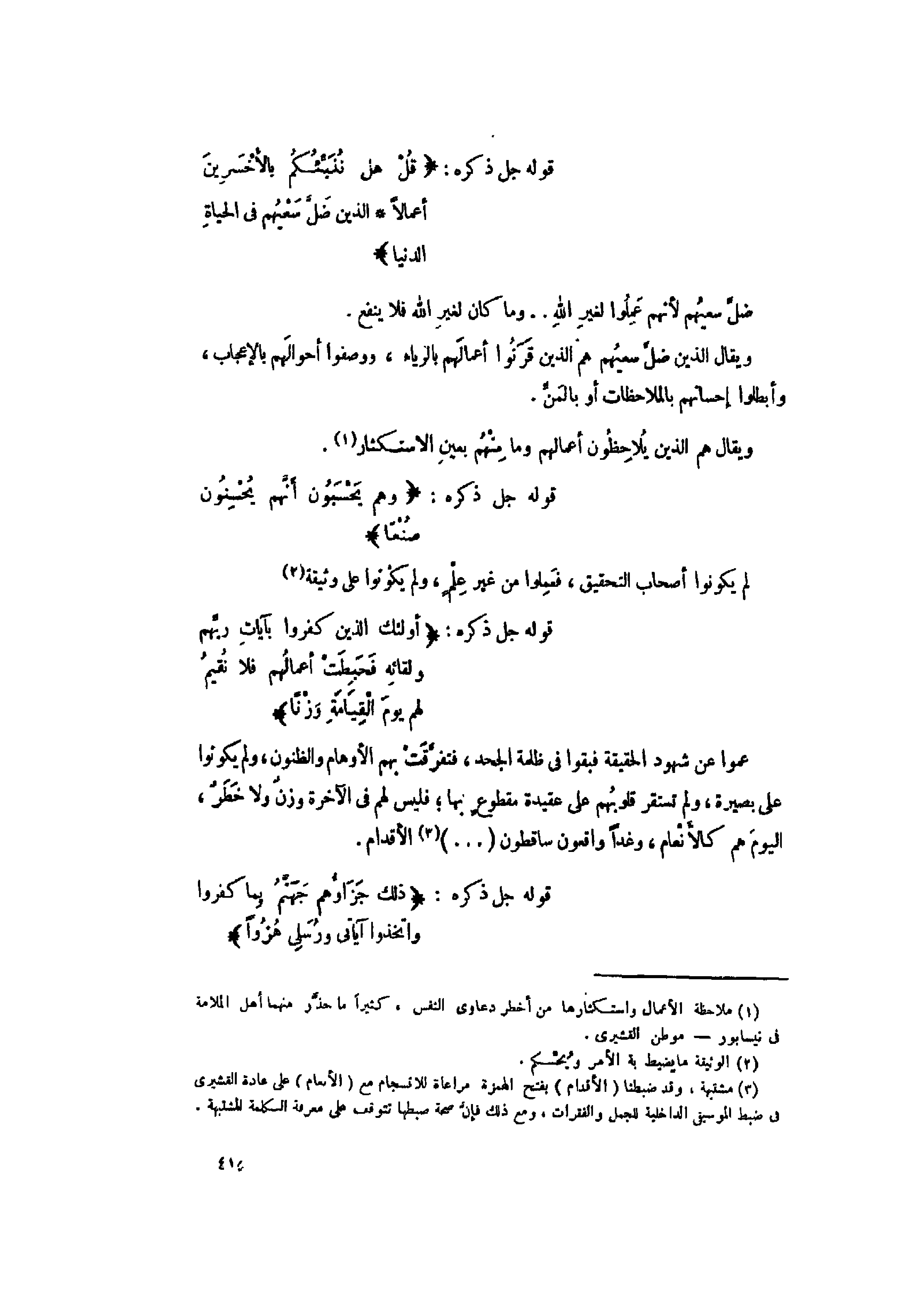 (3) مشتبهة، وقد ضبطنا (الأقدام) بفتح الهمزة مراعاة للانسجام مع (الأنعام) على عادة القشيري فى ضبط الموسيقى الداخلية للجمل والفقرات، ومع ذلك فإنّ صحة ضبطها تتوقف على معرفة الكلمة المشتبهة. [.....]